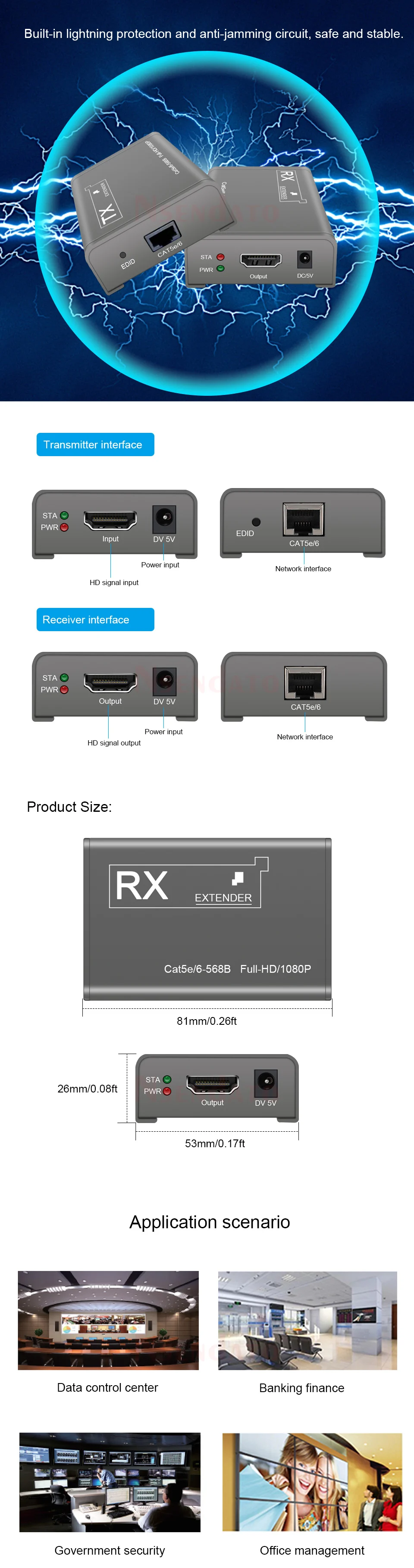 Se utiliza para una extensión de par de este cable CAT6 compatible con HDMI para extender la señal HD hasta 60 metros y puede alcanzar 1080P, para reducir los costos.Nuestros dispositivos ofrecen soluciones para problemas de ruido, espacio y seguridad, control de centros de datos, distribución de información, presentación en salas de conferencias, entornos de capacitación escolar y corporativa.