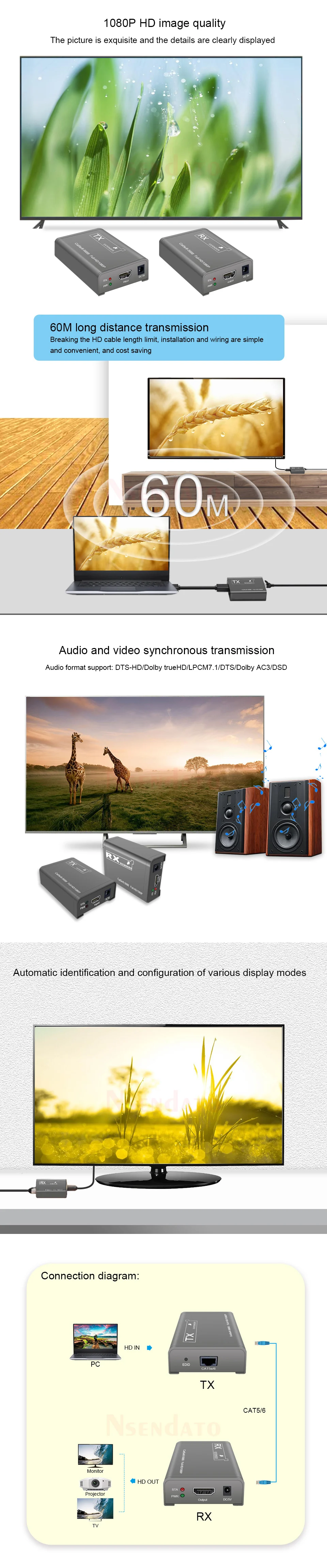 Comprar Extensor HDMI de más de 60M, extensor Cat6, HDMI RJ45, 1080P, HDMI a RJ45, Cable de red Ethernet, extensor para TV, DVD, cámara, Monitor de PC