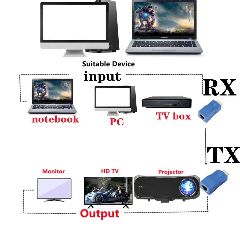 Comprar Extensor hdmi rj45 4K 3D HDMI 1,4 30M a RJ45 sobre Cat 5e/6 adaptador Ethernet LAN de red-gran oferta