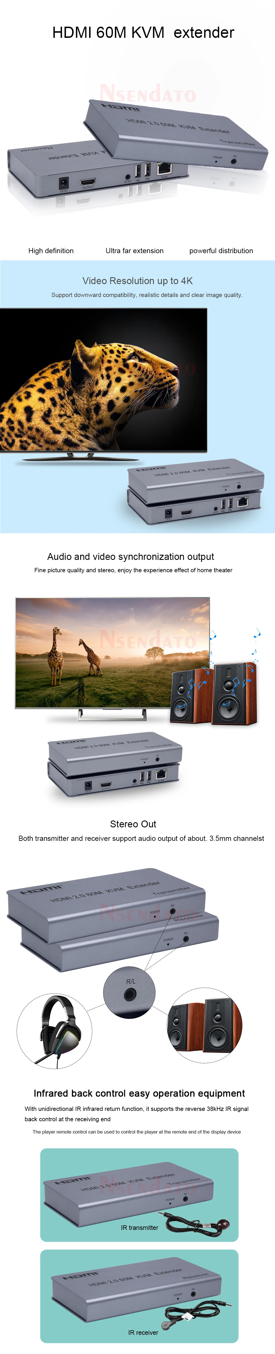 Comprar Extensor HDMI RJ45 4K 60Hz 60m KVM HDMI con USB KVM HDMI sobre Cat6 HDMI KVM Ethernet para teclado de ratón USB