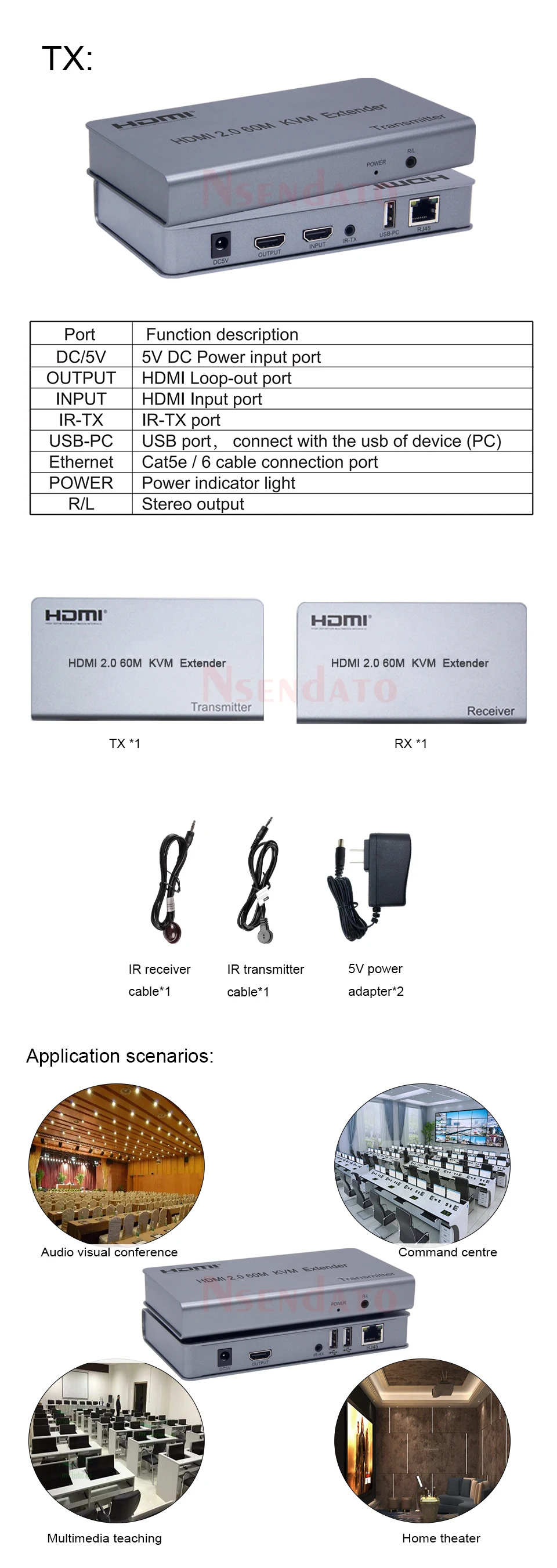 Nsendato HDMI sobre Ethernet se basa en el estándar TCP/IP. Transmite su pantalla HD con las altas resoluciones de hasta 60 metros de distancia de su fuente HDMI mediante un cable CAT5e/6. Con la ventaja del estándar TCP/IP, puede ampliar su vídeo HD a múltiples pantallas utilizando un conmutador Ethernet, lo que proporciona una mayor flexibilidad y opciones al integrar varios componentes de cine en casa.