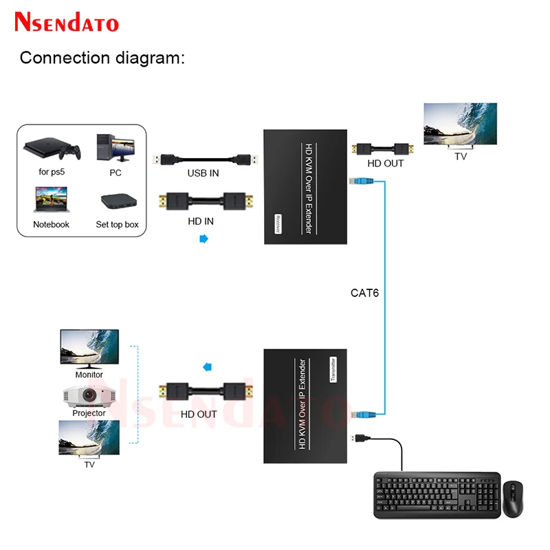 Comprar Extensor HDMI RJ45 4K 60Hz 60m KVM HDMI con USB KVM HDMI sobre Cat6 HDMI KVM Ethernet para teclado de ratón USB