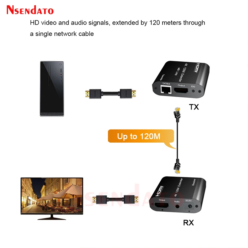 Comprar Extensor HDMI RJ45 Aux Audio 4K 60M 120m HDMI sobre Cat6 5E extensor de red Ethernet Swtich para PS4 PS5 apple TV PC laptop HDTV