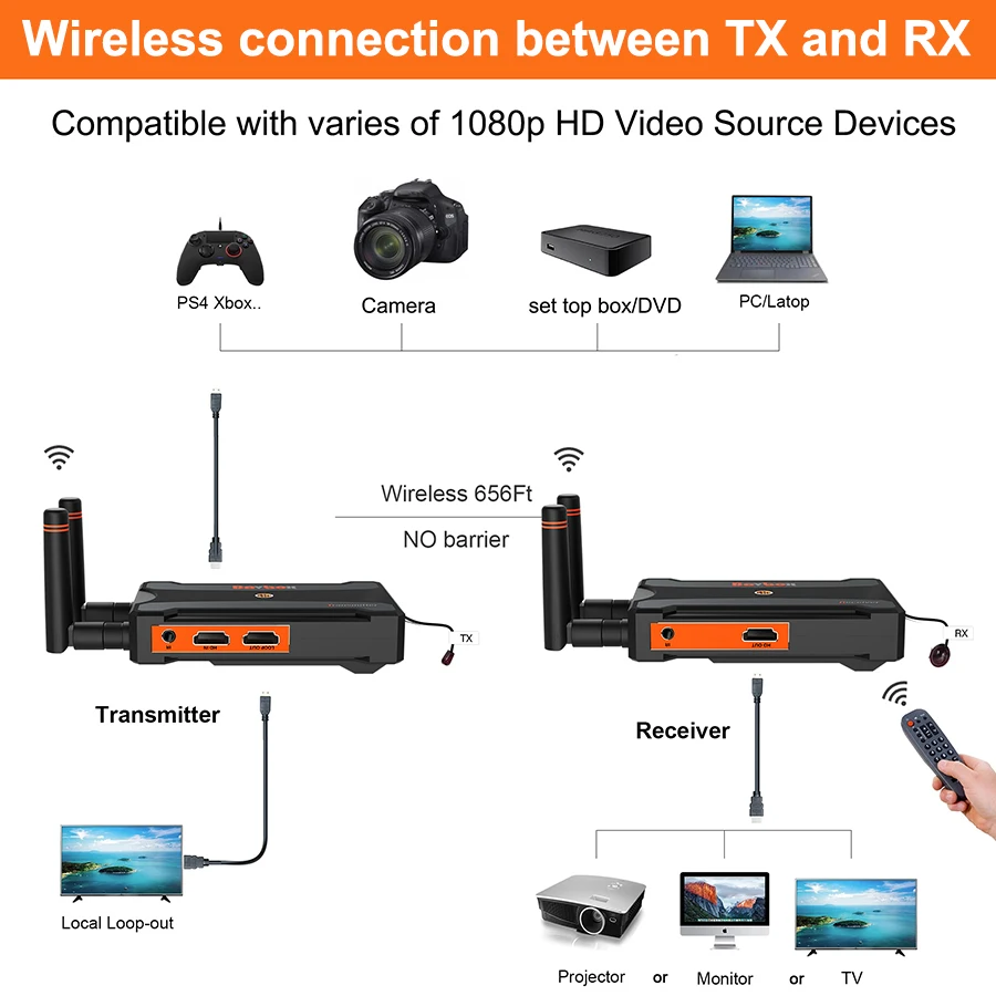 Comprar Extensor HDMI de transmisión inalámbrica de 200M, pantalla de 1080P, receptor transmisor de vídeo compartido para cámara, transmisión en vivo, PC para monitorear