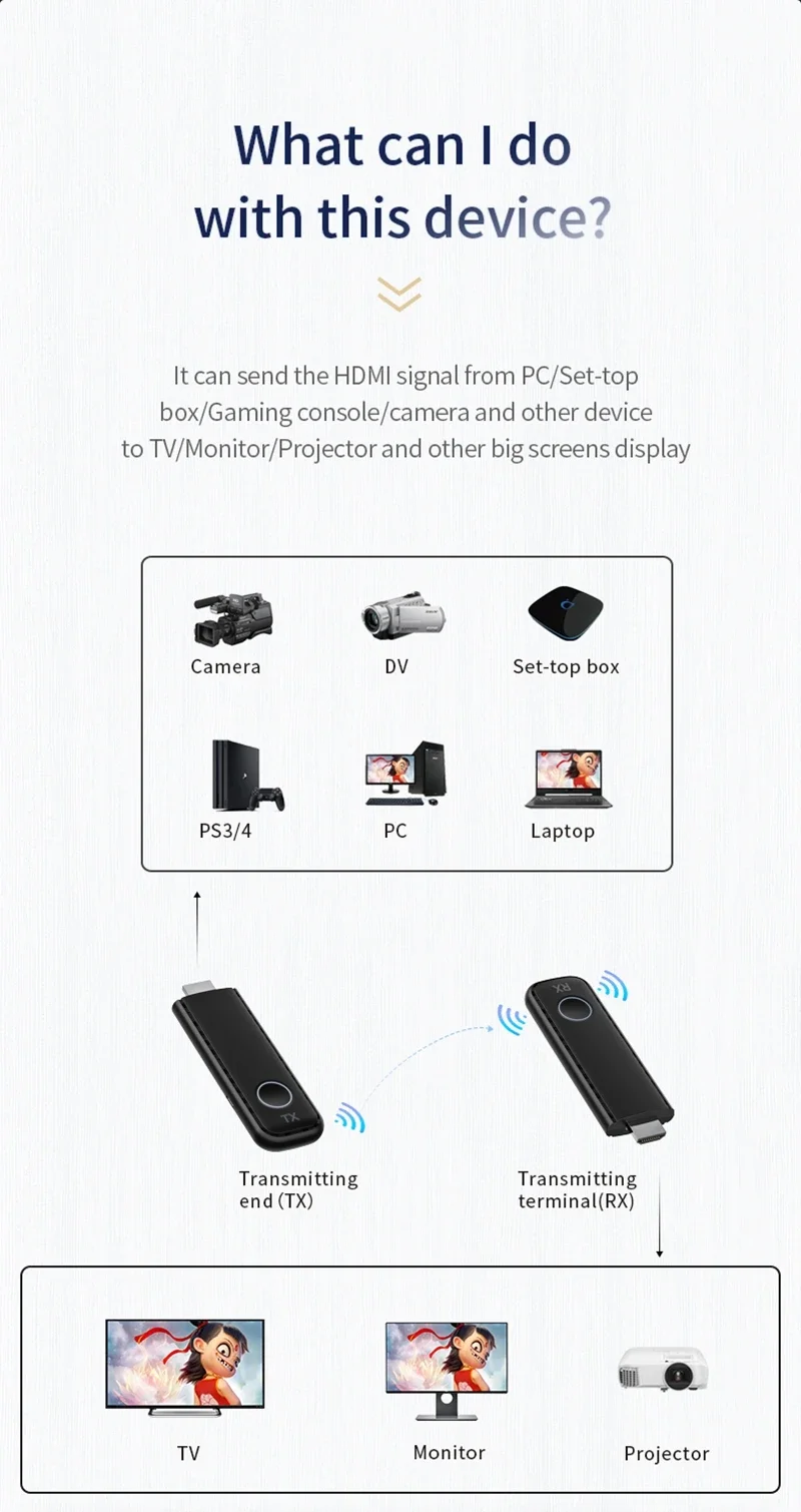 Nuevo Mini extensor inalámbrico HDMI de 30m Full HD 1080P