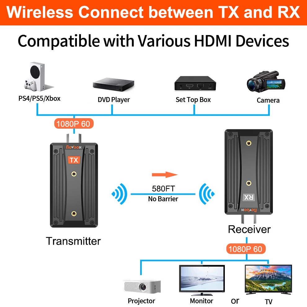 Comprar Extensor HDMI de transmisión inalámbrica, receptor transmisor de vídeo de 1 a 4 m, adaptador de pantalla inalámbrico para cámara, PC, TV y proyector, 180m