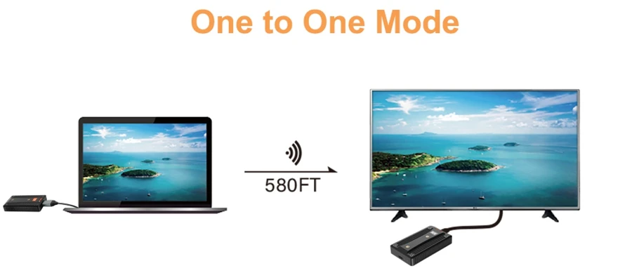 4. Distancia de transmisión de hasta 580 pies en un entorno sin barreras en línea recta en modo 1 TX a 1 RX.