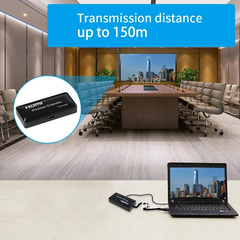HDMI y vídeo. Transmite la señal hasta 150M en el área abierta sin barreras.