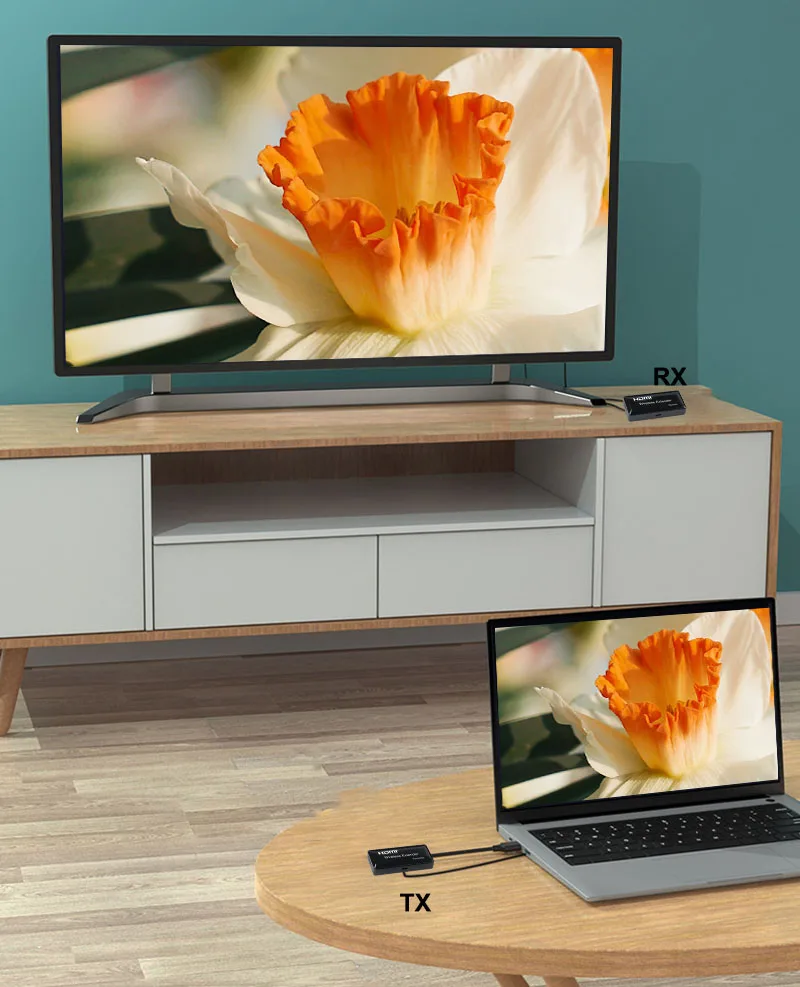 Este extensor inalámbrico HDMI utiliza módulos de 2,4G y 5G para permitir una conexión inalámbrica de alta velocidad y alto rendimiento