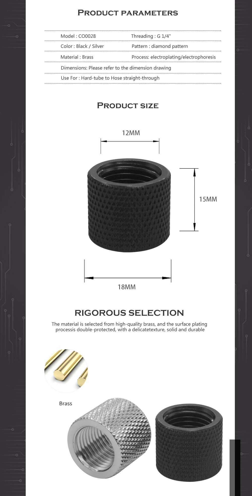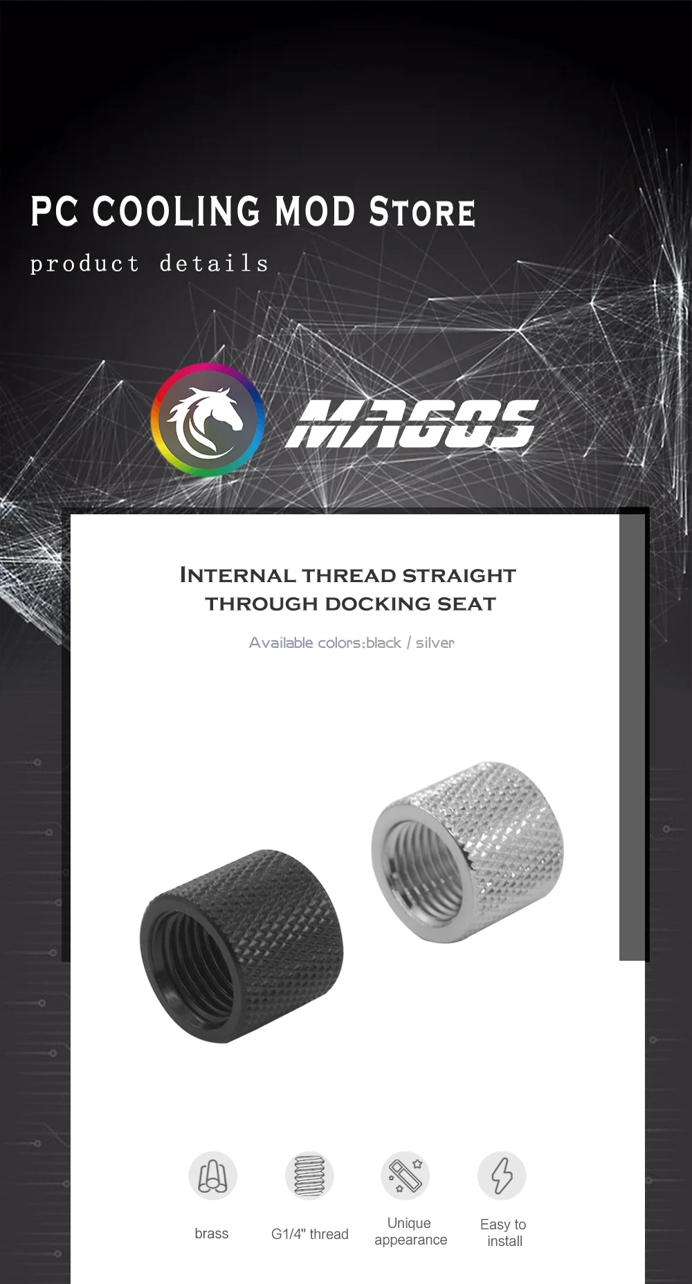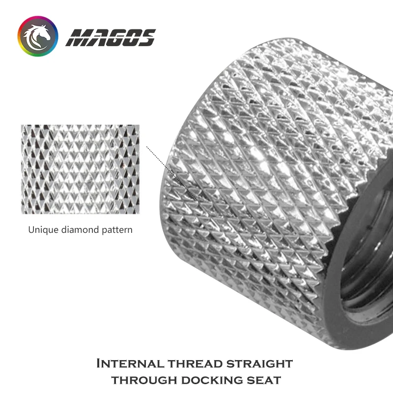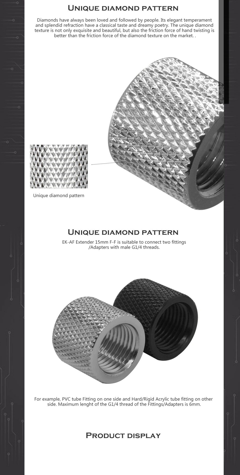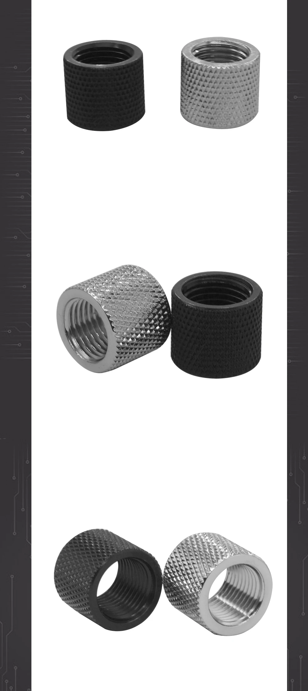 Por ejemplo, tubo de PVC en un lado y tubo de acrílico duro/rígido en el otro lado. La longitud máxima de la rosca G1/4 de los accesorios/adaptadores es de 6mm.