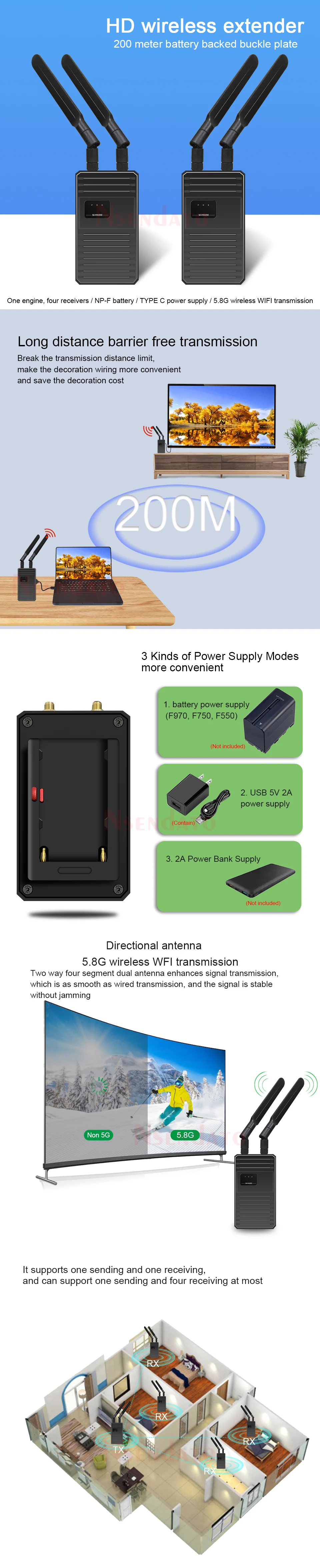 Extensor inalámbrico Compatible con HDMI 1080P 200M 5,8 Ghz transmisor y receptor de Video inalámbrico Compatible con HDMI Compatible con batería DSLR
