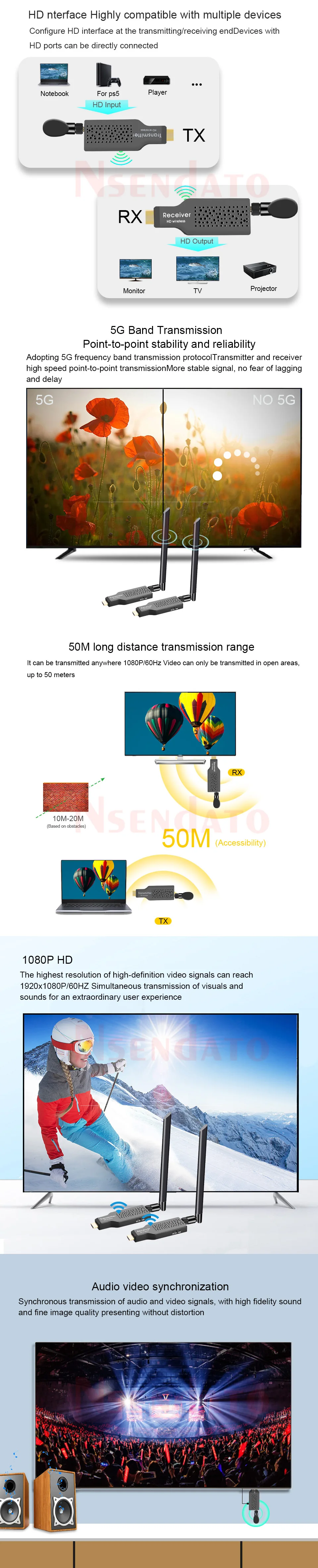 Extensor inalámbrico HDMI 1080P, transmisor y receptor de vídeo HDMI, pantalla inalámbrica de 50m, Dongle de palo de TV para cámara PS4, PC a TV