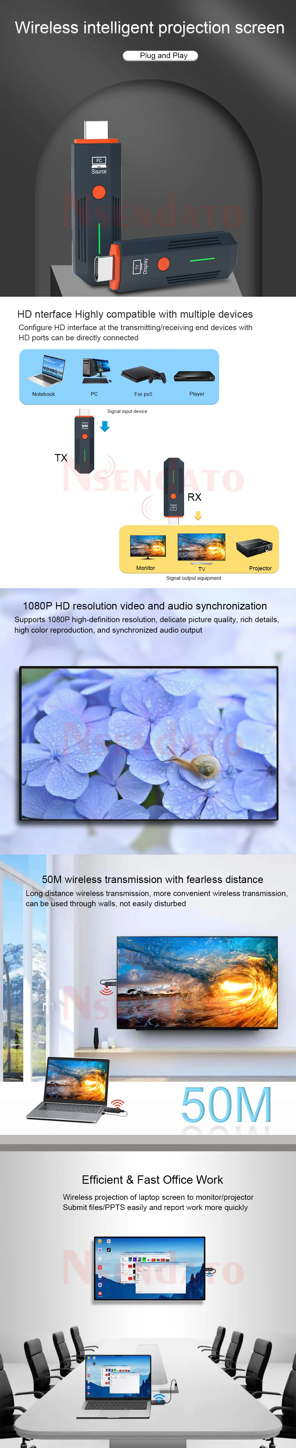 Extensor inalámbrico HDMI 50M 1080P receptor transmisor de vídeo HDMI 1TX a 2 RXS extensor de pantalla de palo de TV inalámbrico para cámara PC a TV