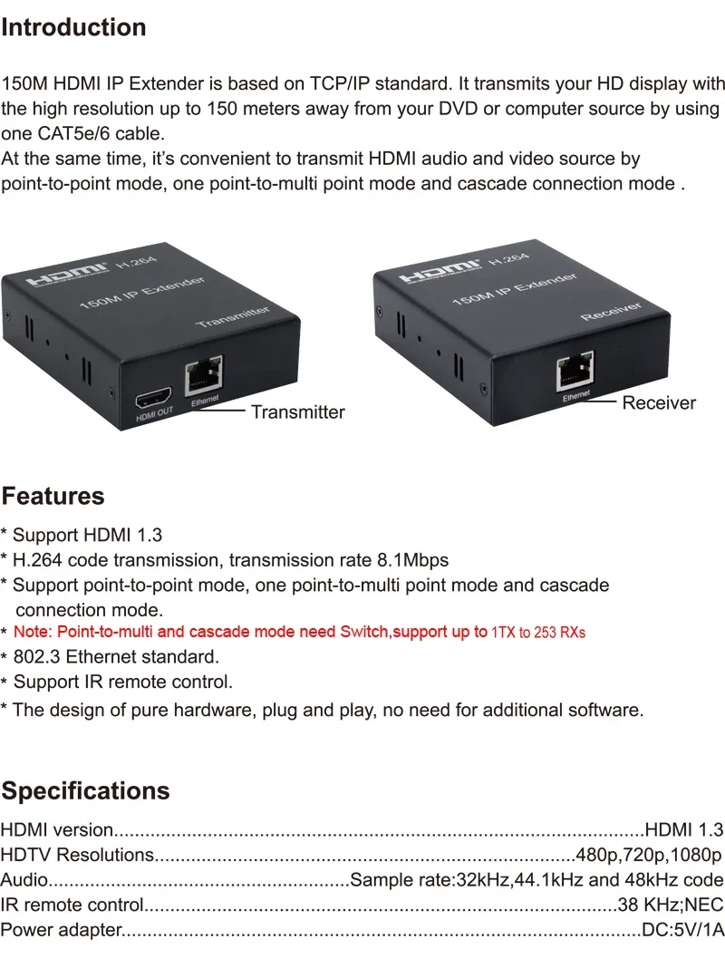 2.Este producto puede tener varias versiones (firmware diferente) y las diferentes versiones del transmisor y el receptor no pueden funcionar juntas.Si el producto se fabrica en un solo pedido, podemos asegurarnos de que una versión definitivamente funcionará.Si compra el transmisor y el receptor por separado, contáctenos con anticipación.De lo contrario, puede resultar en la imposibilidad de usarlo. Si lo compra a otro vendedor, tenga en cuenta este caso también.