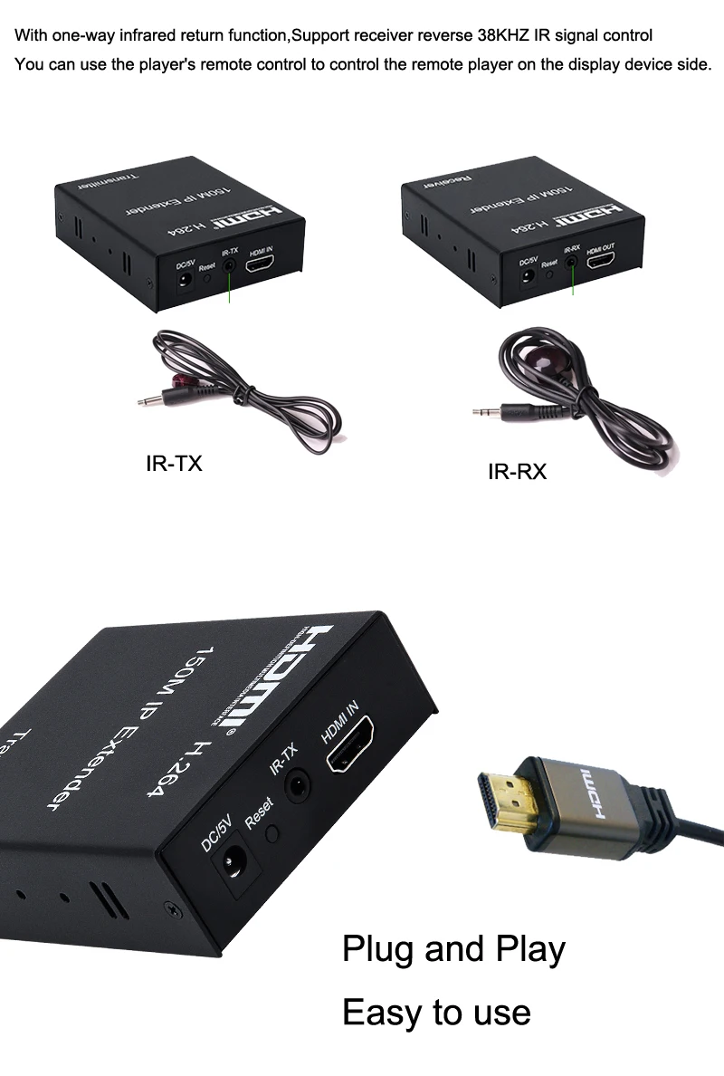 Comprar Extensor IP de 1080P y 150M, transmisor y receptor HDMI, divisor Ethernet a través de Cable de red RJ45 CAT5e/6, compatible con un TX a múltiples RX