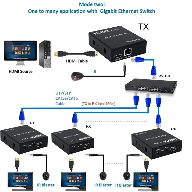 Comprar Extensor IP HDMI de 150M a través de red Ethernet RJ45 Cat5e Cat 6 7 Cable a través del interruptor 1 transmisor a receptor múltiple para PS4 portátil TV