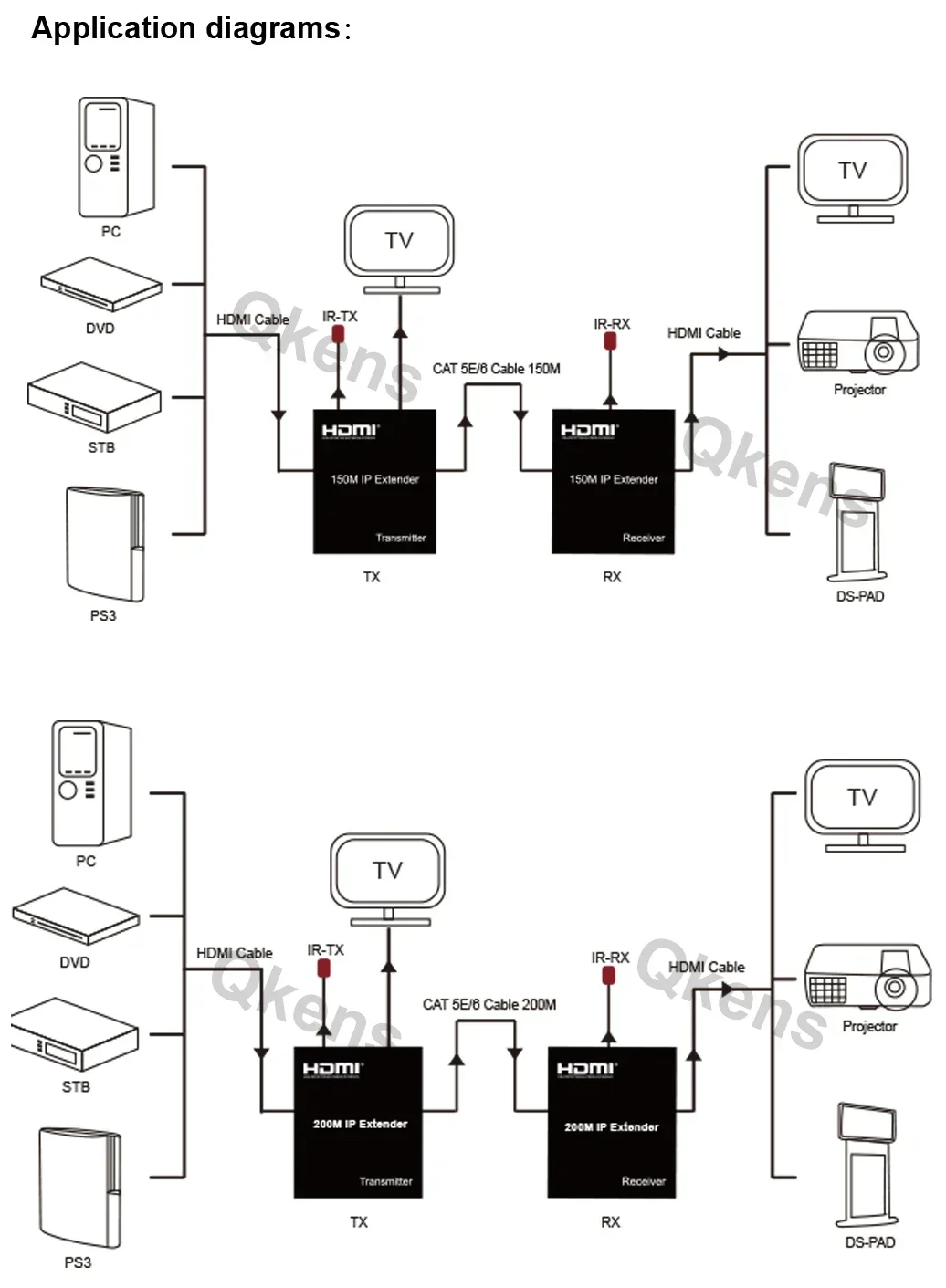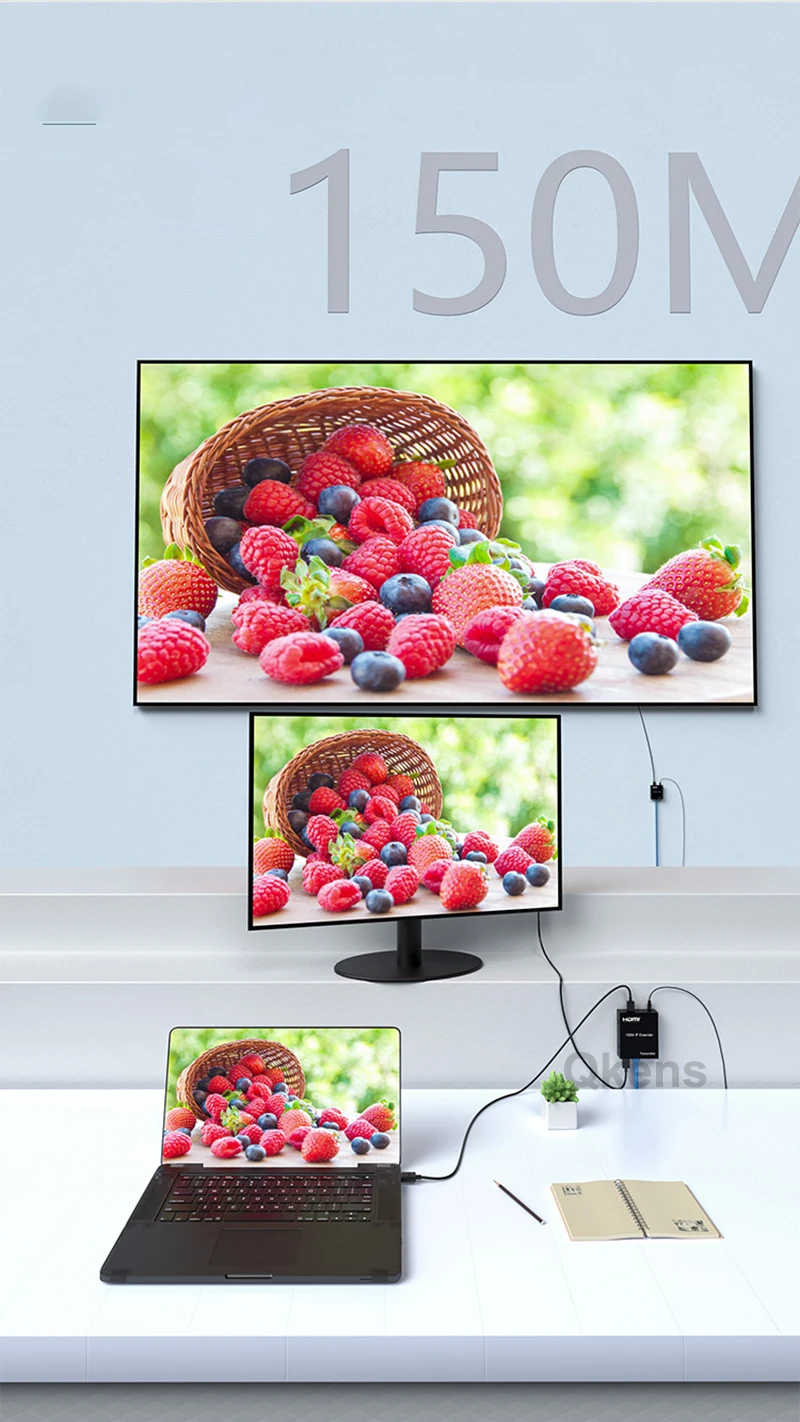 Este extensor IP HDMI Qkens de 150M / 200M se basa en el estándar TCP/IP.Transmite tu pantalla HD con
