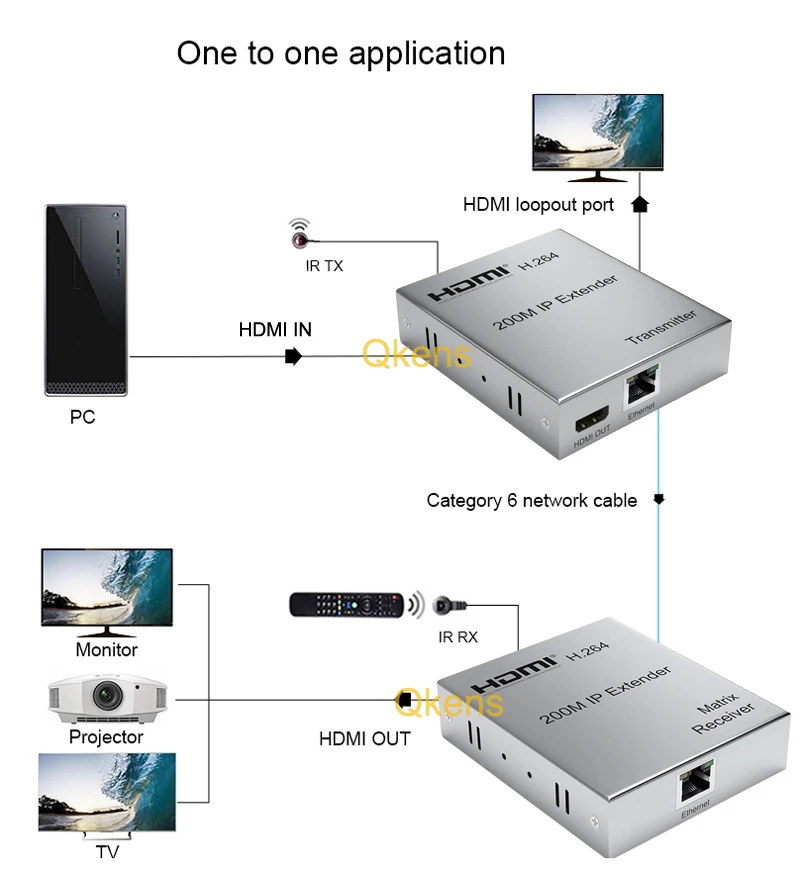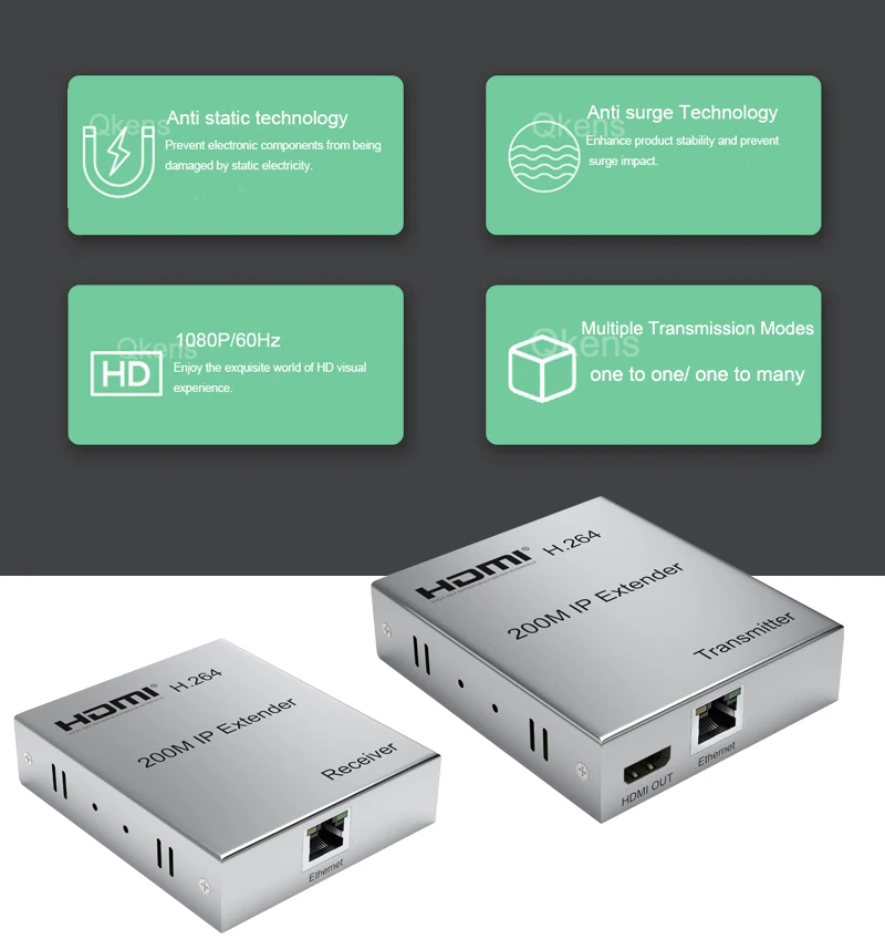 Este extensor IP HDMI de 200M se basa en el estándar TCP/IP. Transmite su pantalla HD con la alta resolución