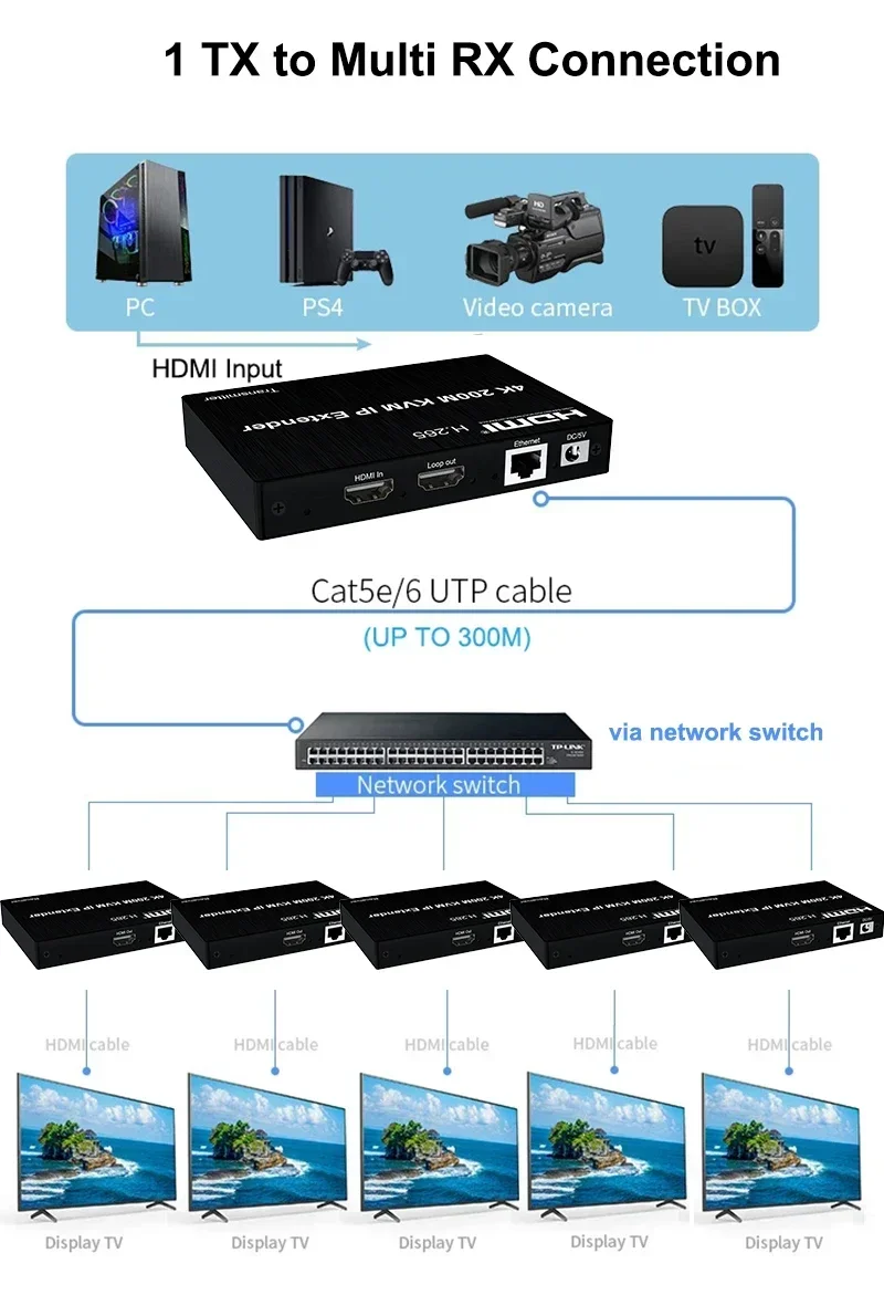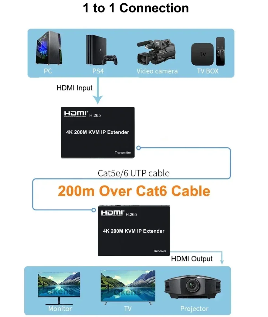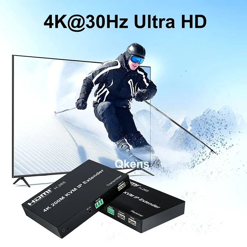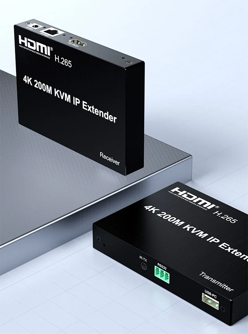 Comprar Extensor KVM 4K, 200M, HDMI, IP, Cat5e h.265 sobre/6 Rj45, Cable Ethernet, transmisor de vídeo, receptor, convertidor, compatible con teclado de ratón