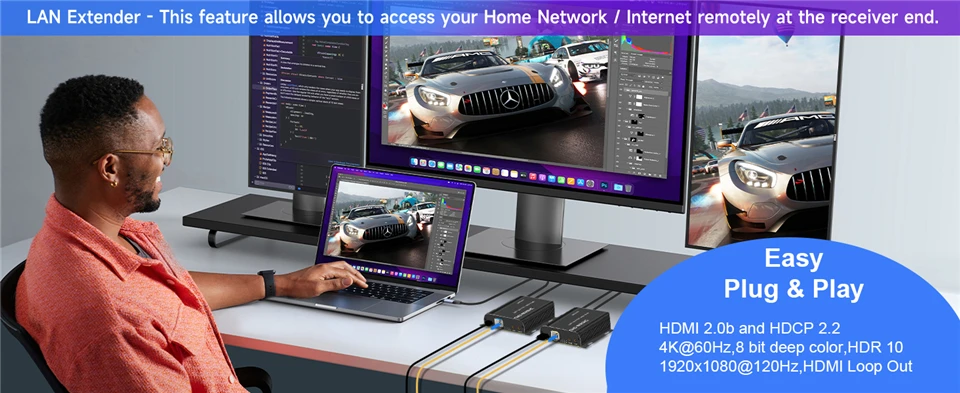 Sistema de protección ESD incorporado: hace que la transmisión sea mucho más segura.Adaptador de extensión HDMI perfecto para casas grandes, fábricas, sitios de construcción, centros de control de datos, etc.