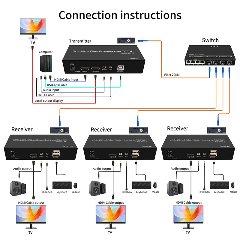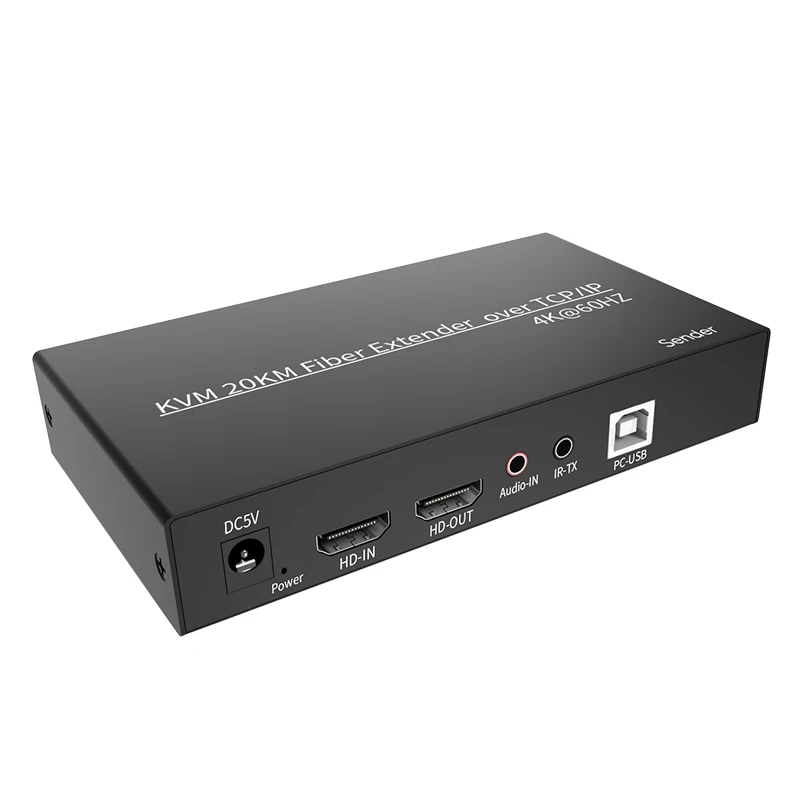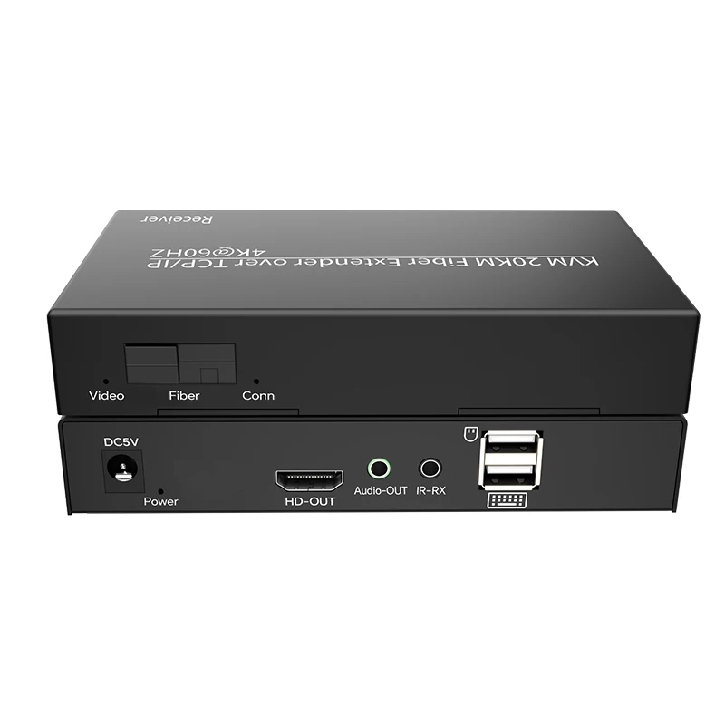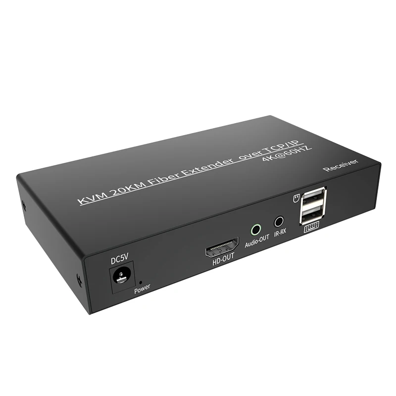 Este producto transmite señales de audio y video HDMI de alta definición transmite señales de video de alta definición a largas distancias a través de fibra óptica, admite la función KVM y puede operar dispositivos remotos usando teclado y mouse.Con la resolución más alta de 3840*2160@60Hz más de 20 km, admite transmisión de audio independiente y admite salida de bucle local, lo que reduce los costos para los usuarios y al mismo tiempo garantiza la estabilidad de la señal.