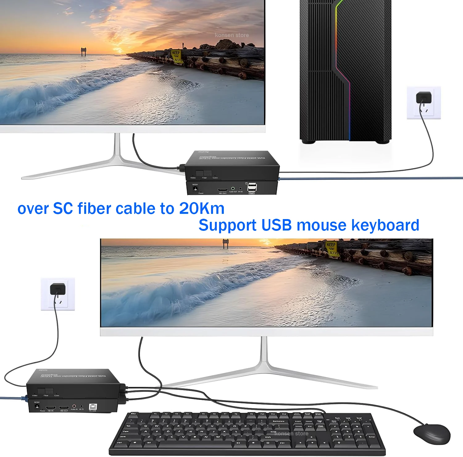 Comprar Extensor KVM de fibra HDMI 4K 60Hz sobre Cable de fibra óptica SC 20Km HDMI USB KVM extensor transceptor de fibra compatible con teclado de ratón