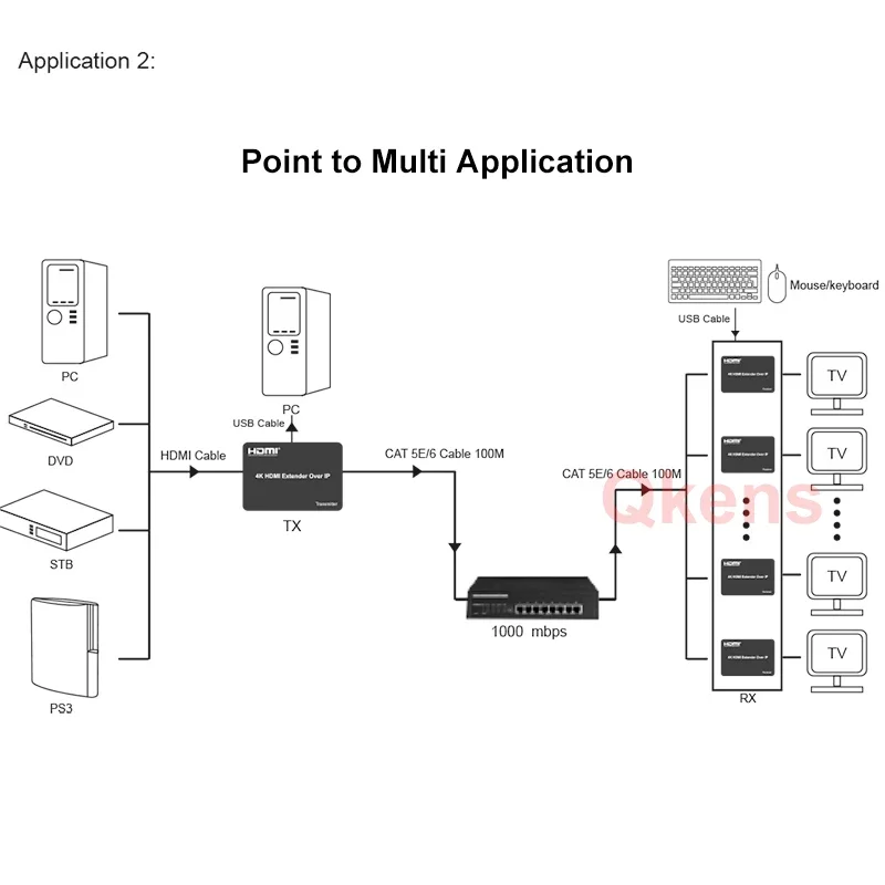 PC y otros dispositivos con cable CAT5E / 6, distancia máxima de hasta 150 metros y soporte 4K x 2K @ 30Hz.