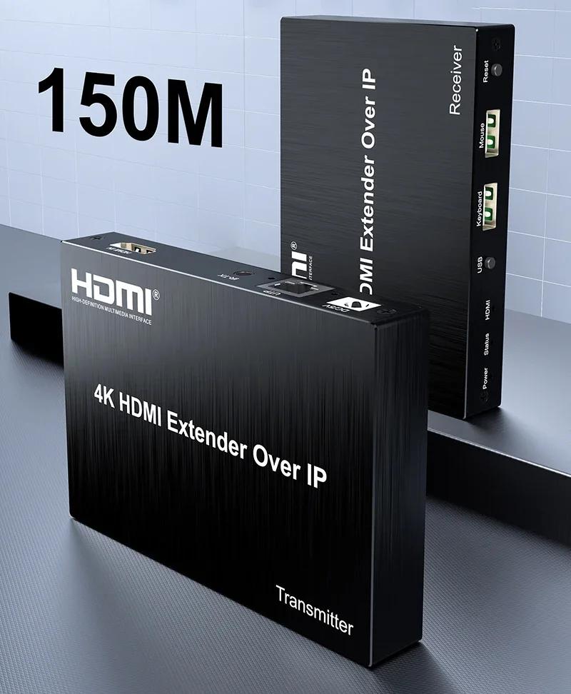 Comprar Extensor de KVM sobre IP, 4K, 150M, Rj45, Cat5e, Cat6, Cable Ethernet, transmisor de vídeo, receptor, compatible con teclado y ratón
