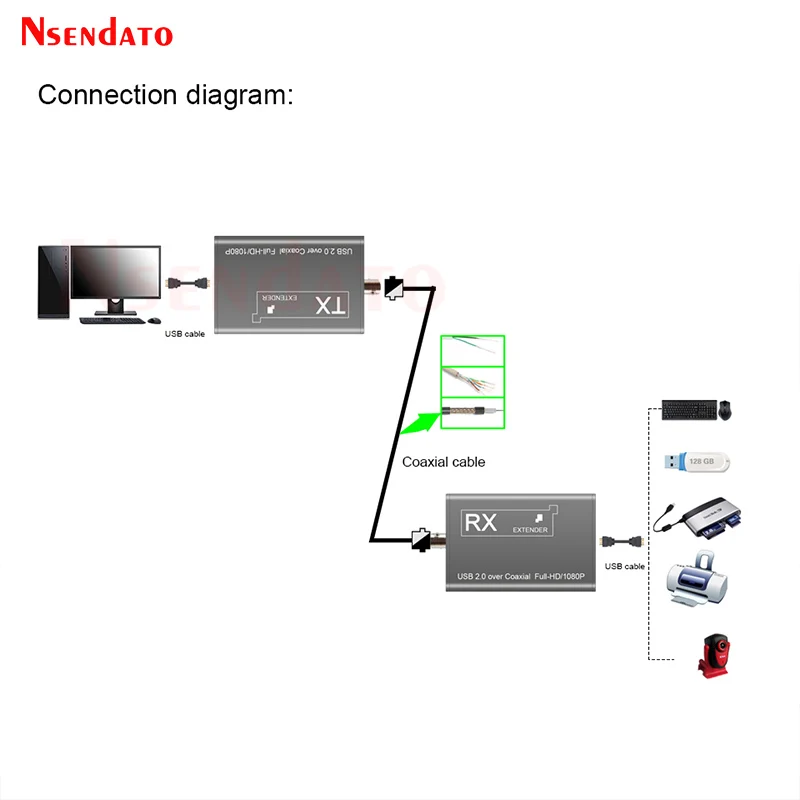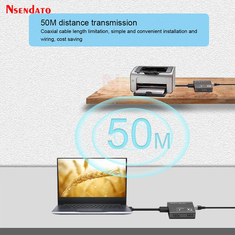 USB 2.0 KVM Extender by coaxial 1080P 50m Over coaxial line twisted-pair Video Transmitter and Receiver USB Extender KVM Switch