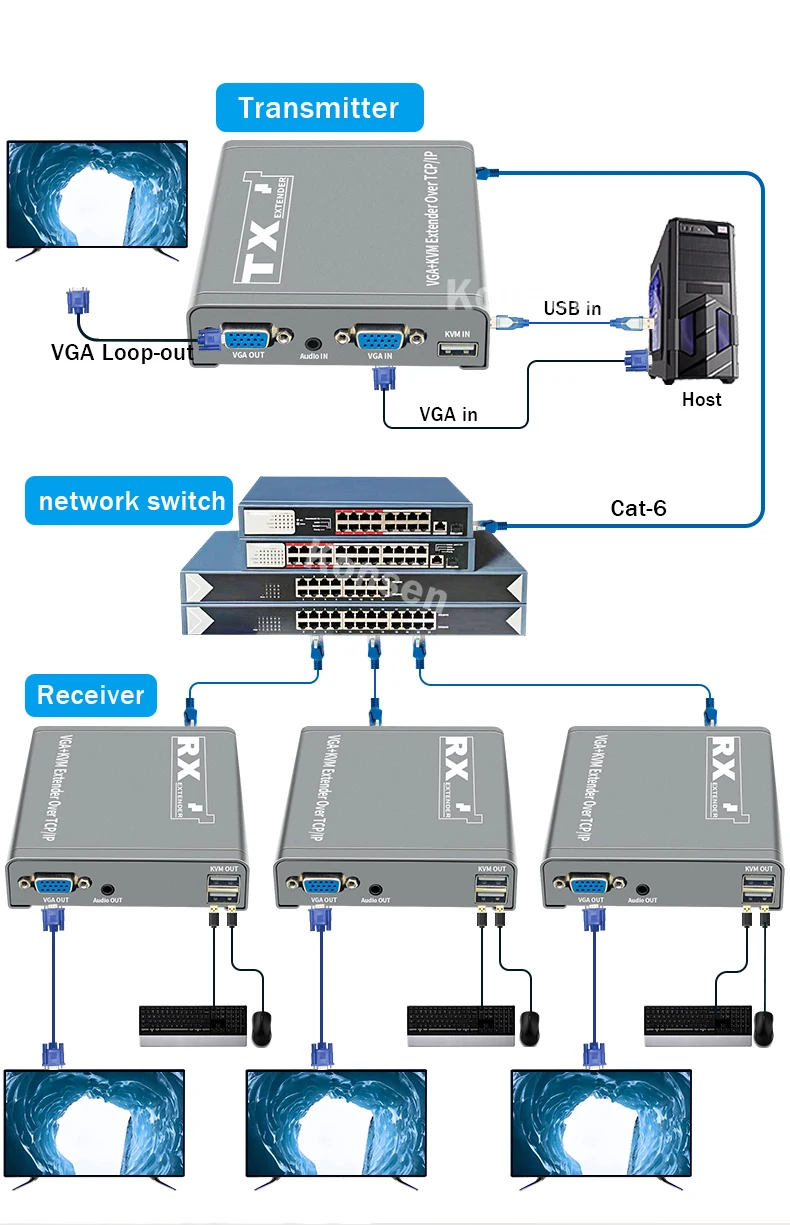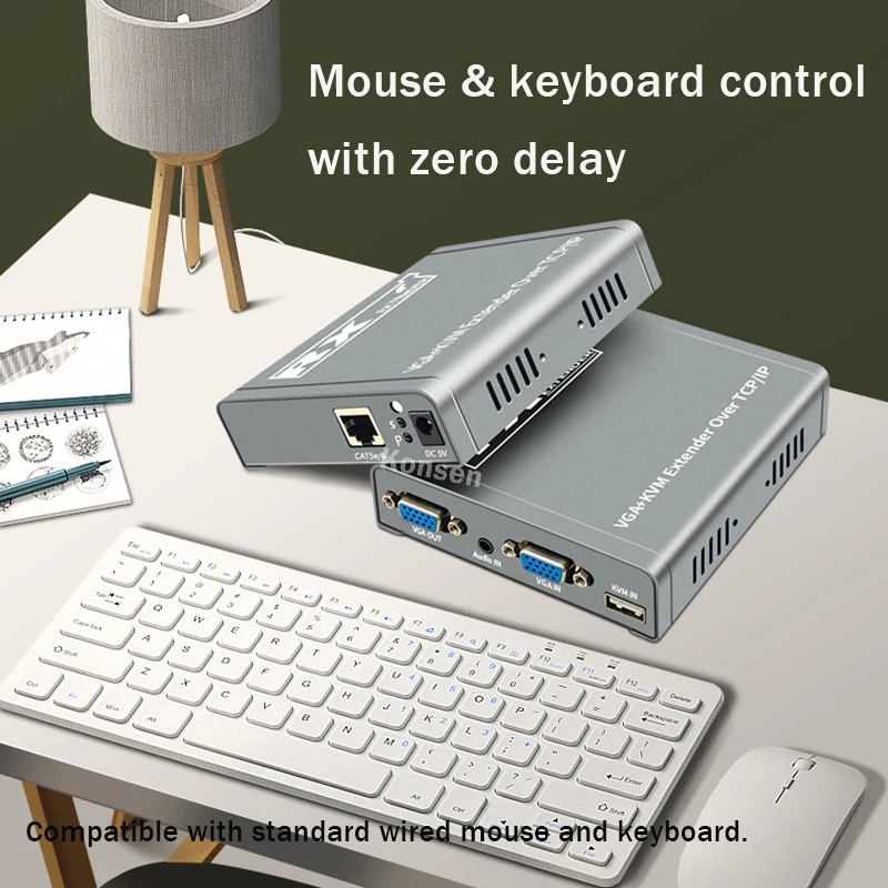 Comprar Extensor KVM VGA de 200M sobre IP, RJ45, Ethernet Cat5e/6, Cable VGA, USB, extensor KVM 1 TX a muchos RX a través del interruptor, compatible con teclado de ratón
