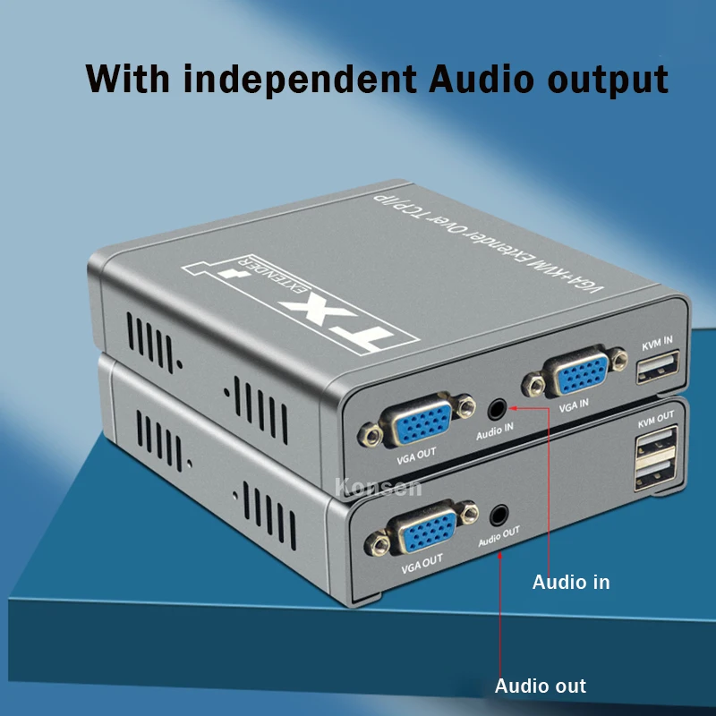 Extensor VGA KVM USB extensión de ratón/teclado 200M por cable de red Cat/RJ45/LAN/UTP, control IR, salida de audio TX/RX 3,5 MM R/L