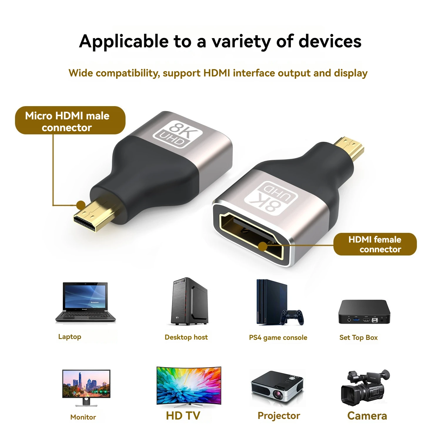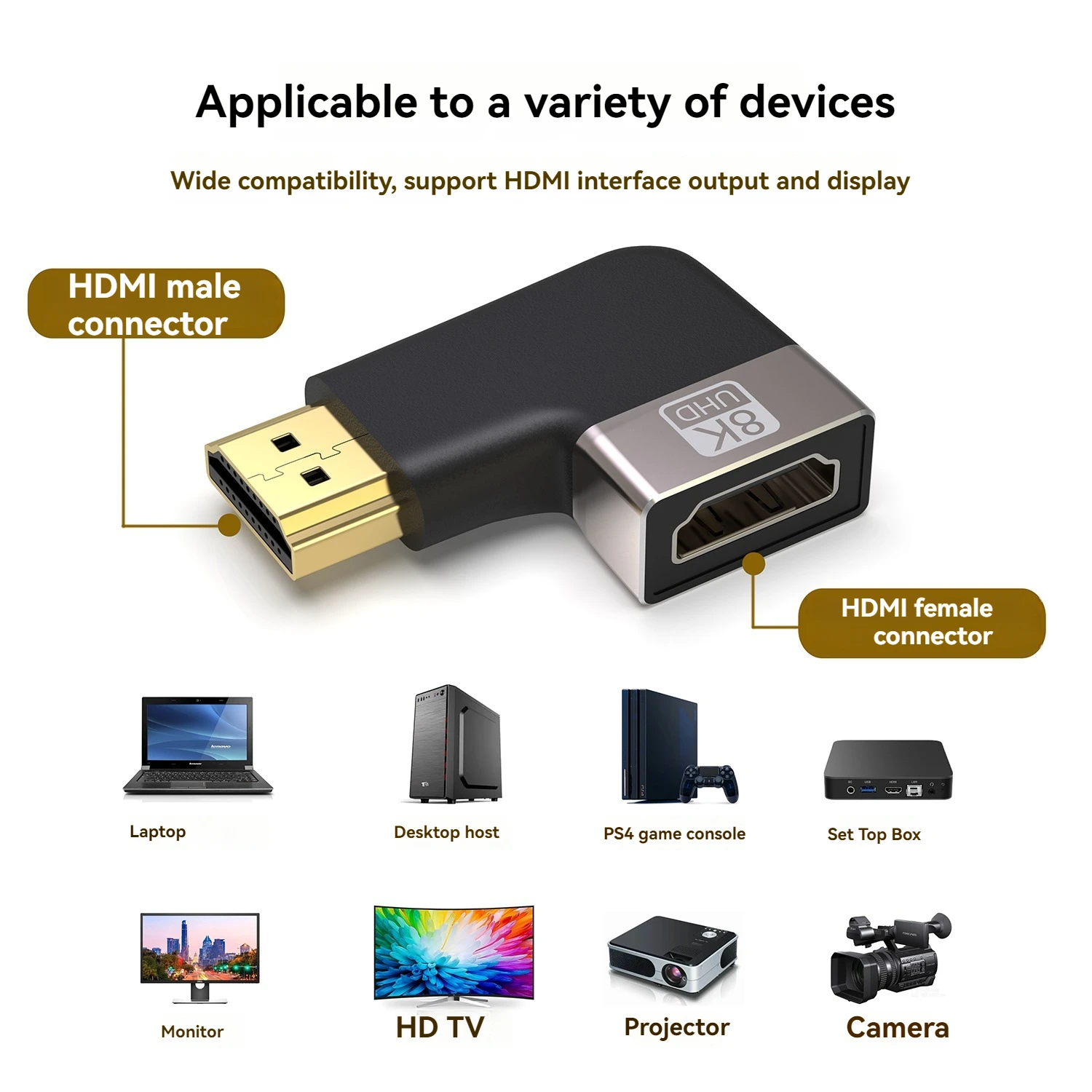 1: Acoplador HDMI: Mini bolsillo.Pero con gran rendimiento.Admite 8K@60HZ, 4K@120HZ y resolución 2K y 1080P compatible con versiones anteriores.Admite audio ARC, HEC, Dolby True HD 7.1 y vídeo 3D