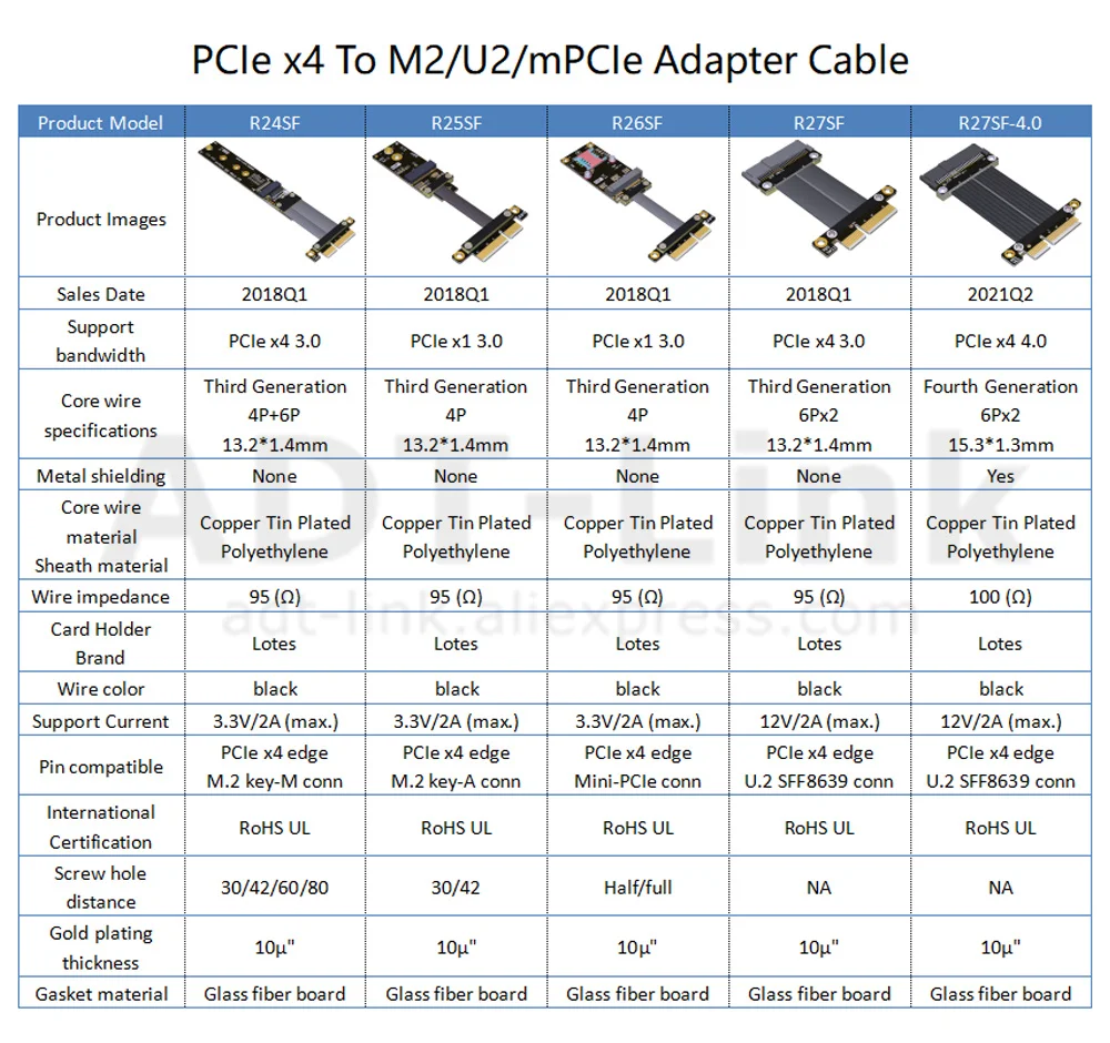 Nombre del producto: cable elevador de extensión PCIe X4 a U.2 M.2 mPCIe