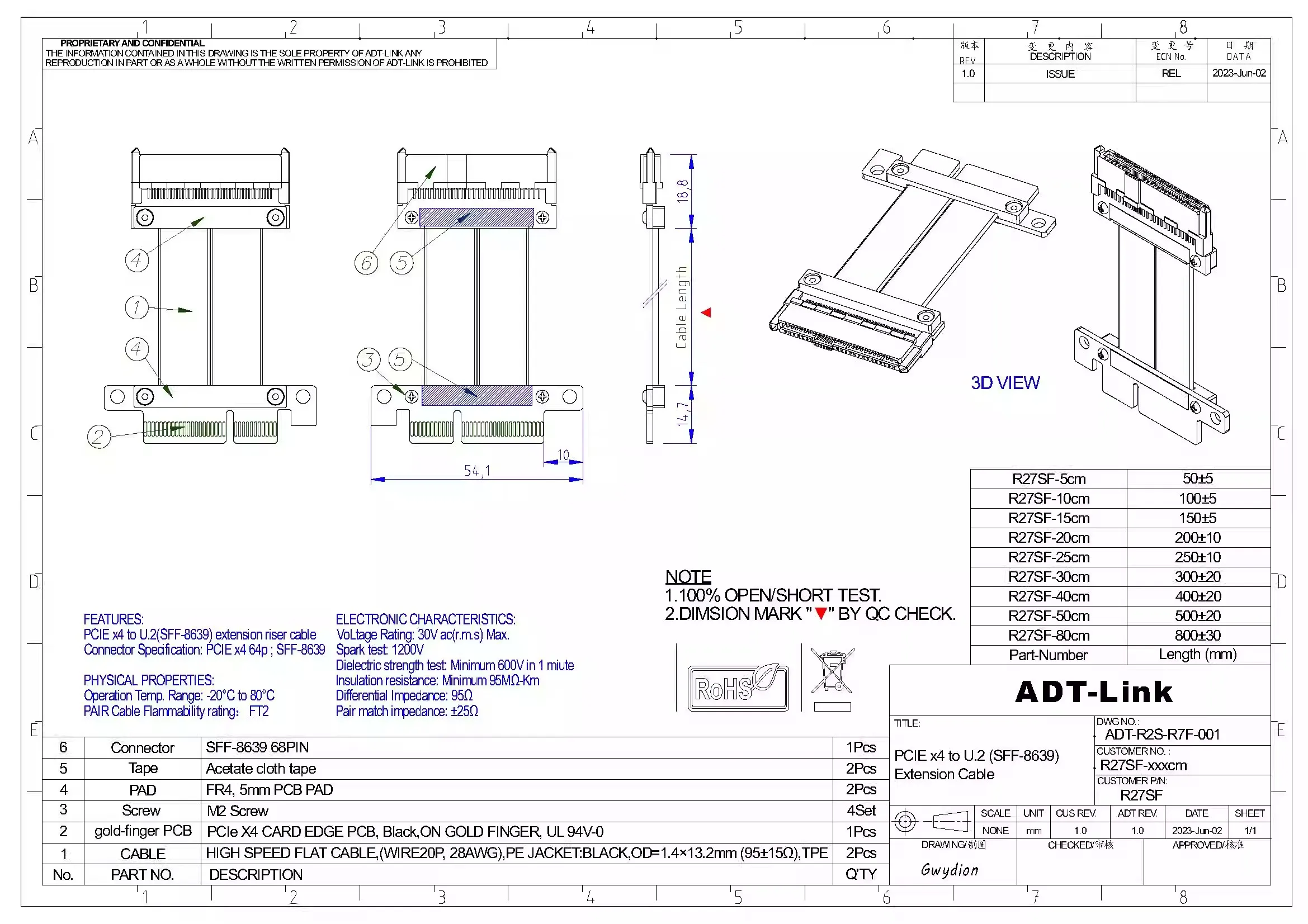 R27SF/R27SL/: Cable de extensión PCI Express 3,0x4 a U.2 ()