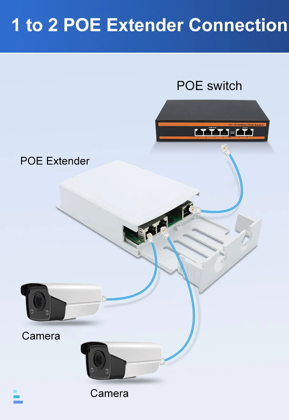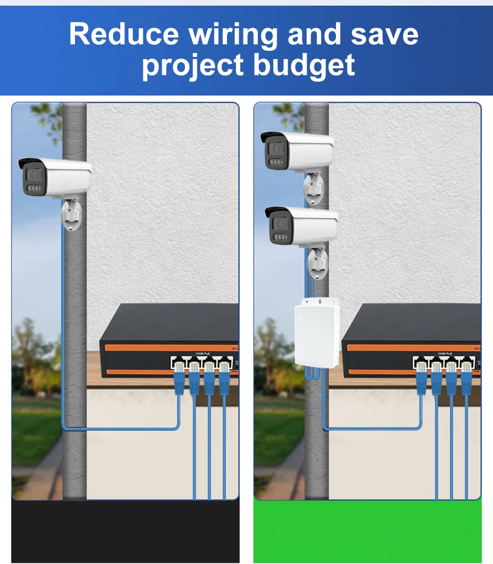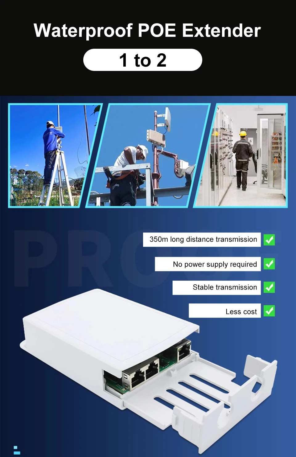 Extensor PoE 1 en 2, resistente al agua IP67, repetidor PoE de 500m, para exteriores, adaptador PoE de 2 puertos