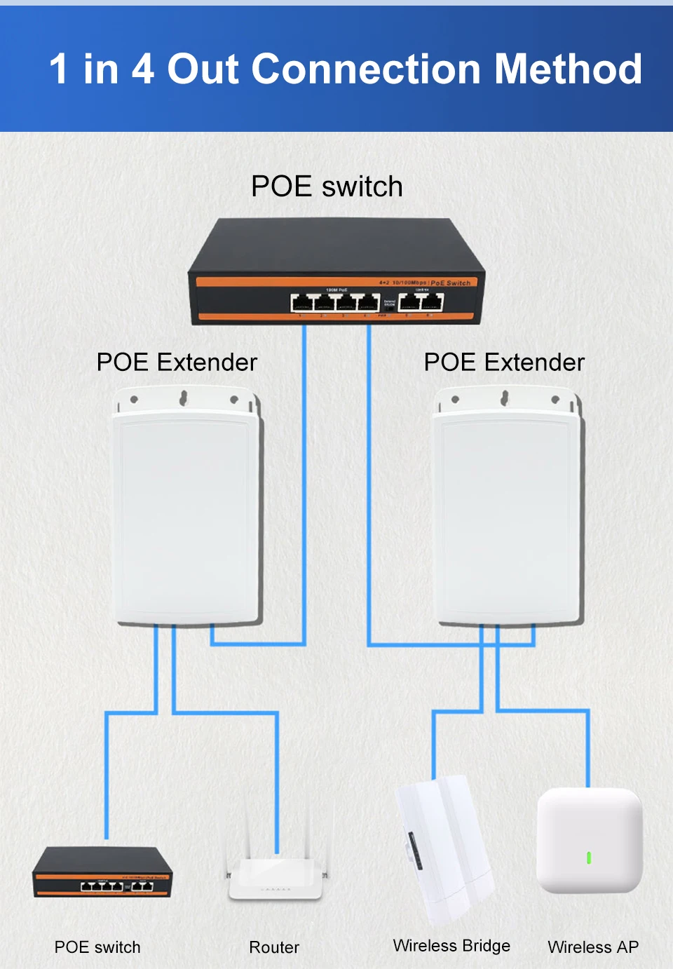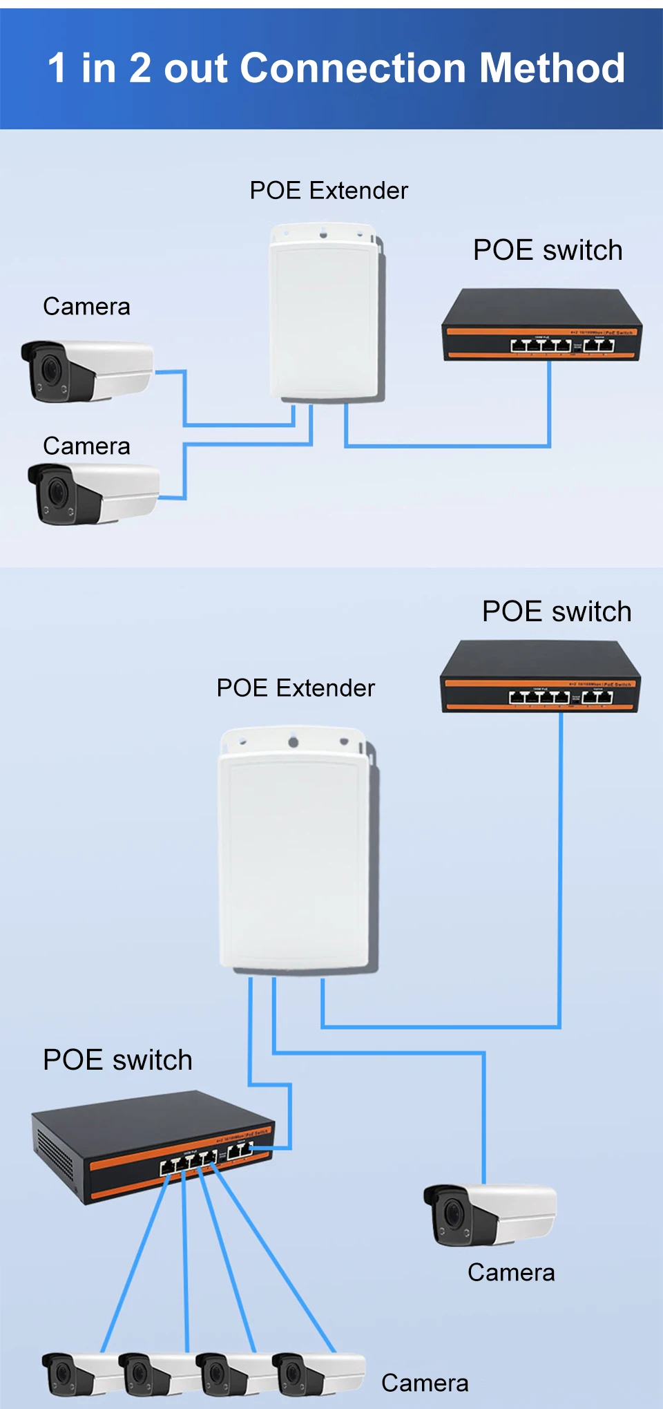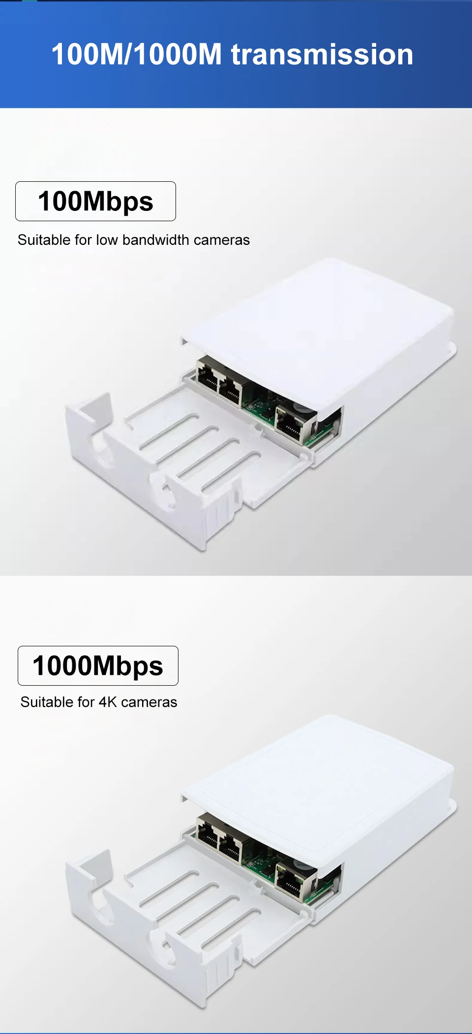 Extensor PoE 1 en 2, resistente al agua IP67, repetidor PoE de 500m, para exteriores, adaptador PoE de 2 puertos