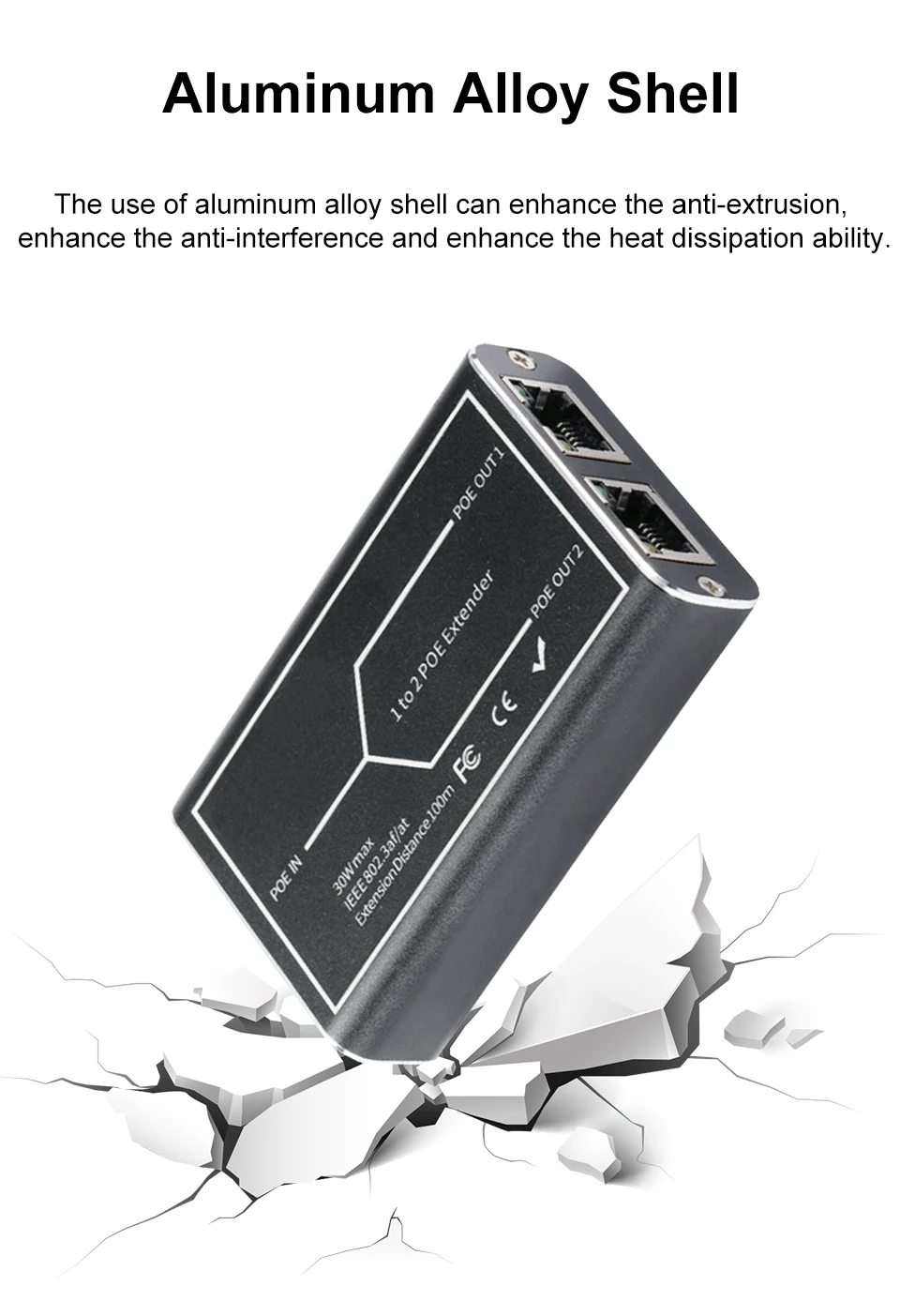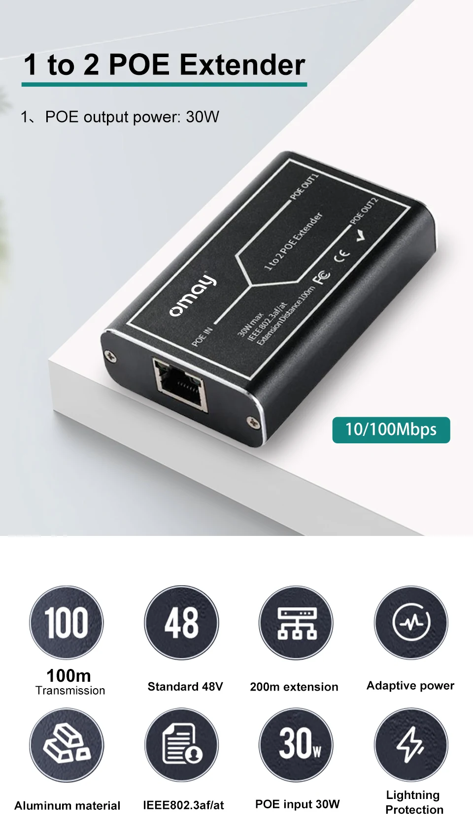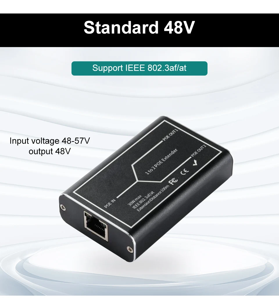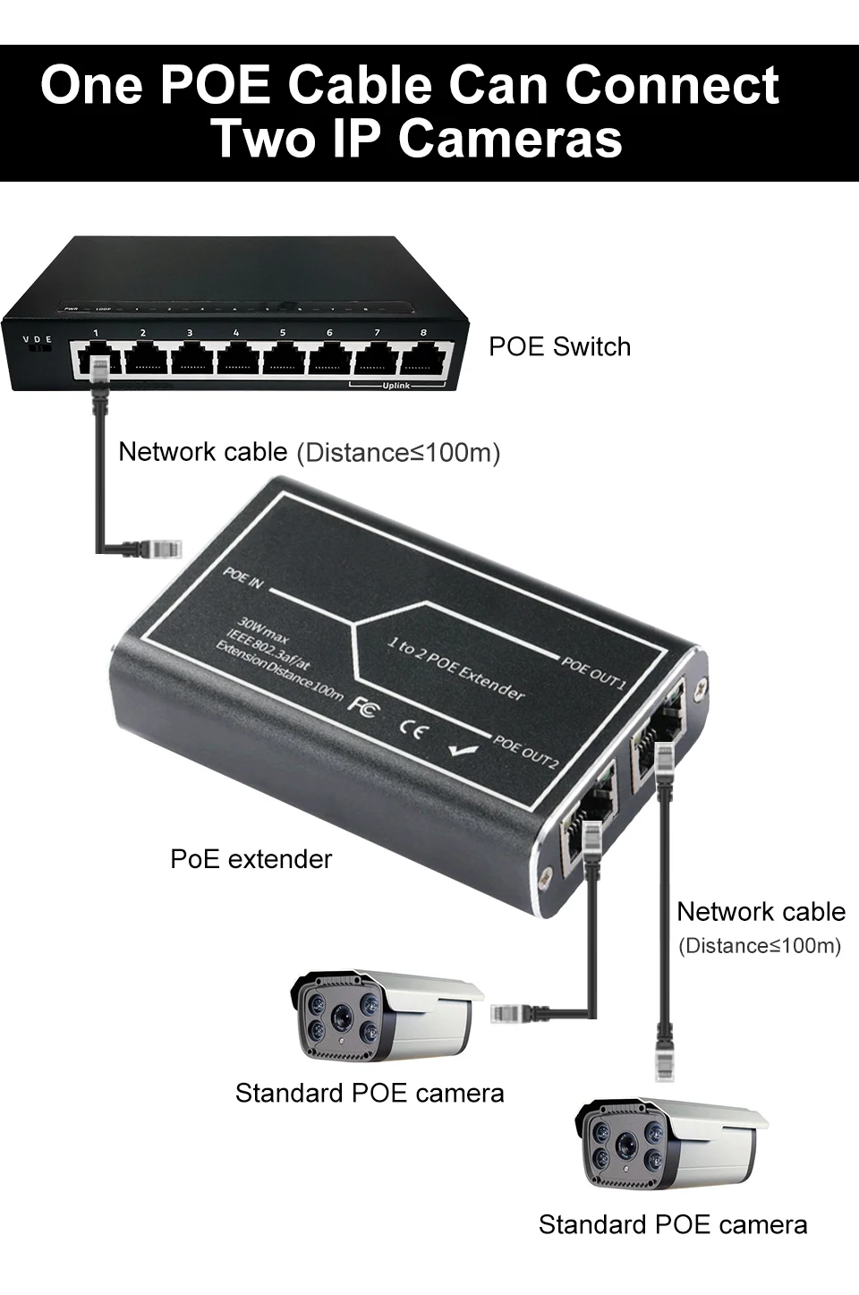 Comprar Extensor POE de 1 a 2 puertos, 100Mbps, IEEE 802.3af/at estándar, 48V, para cámara IP NVR, POE, 100 metros de alcance