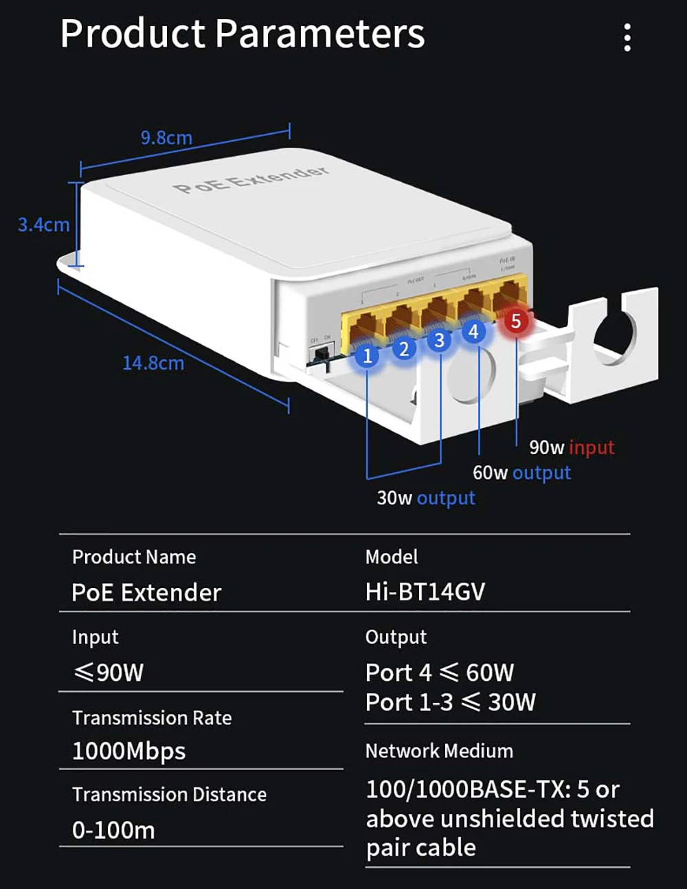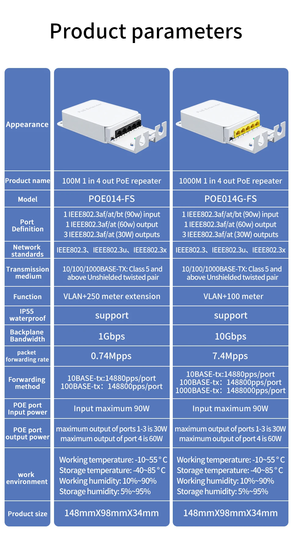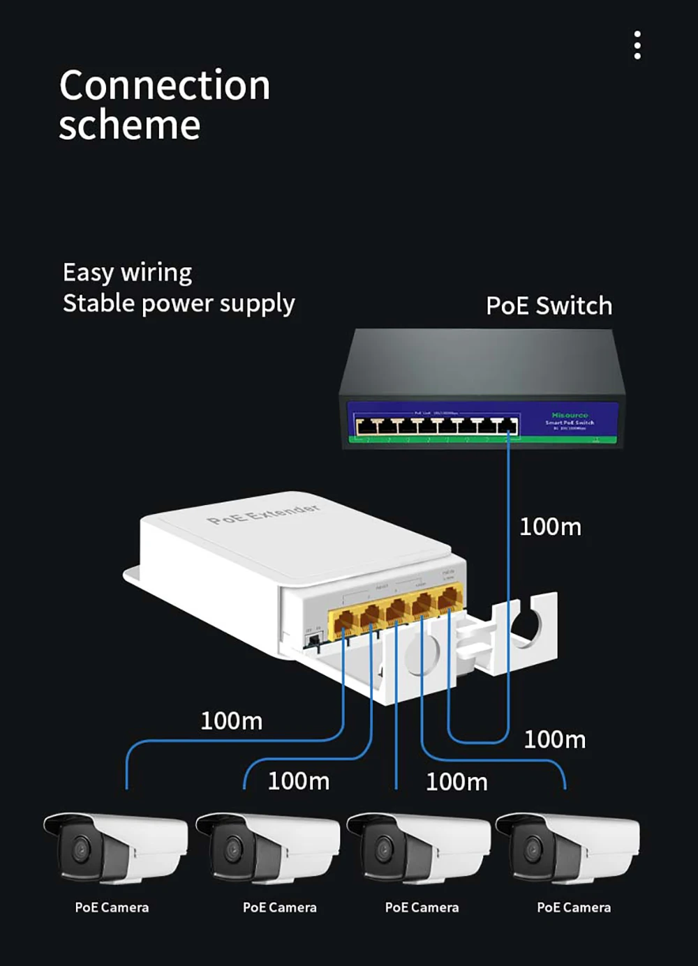 Comprar Extensor POE impermeable de 5 puertos, repetidor de 4 puertos, 100/1000Mbps, red exterior, IP55, VLAN, 44-57V, para cámara POE, AP sin cables