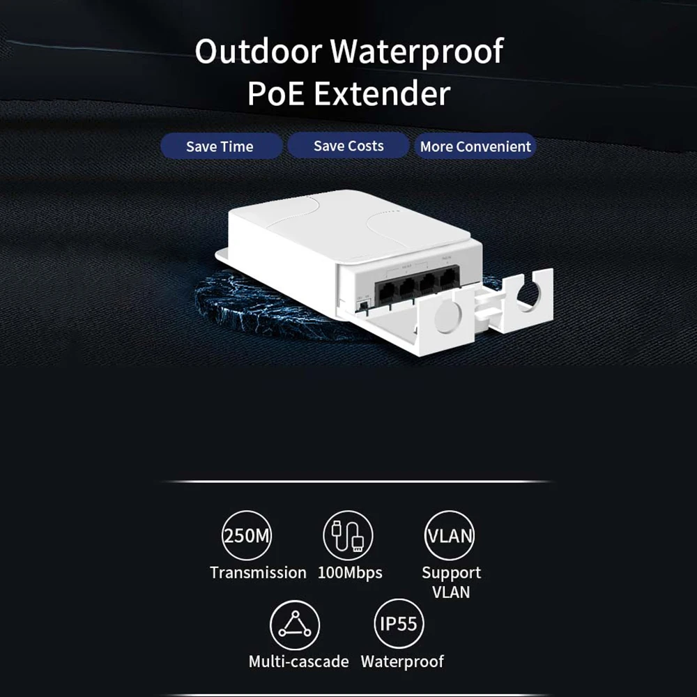 El extensor PoE de 5,3 puertos tiene 3 puertos Lan 10/100/1000M, entre ellos, uno para entrada de energía y los otros tres para salida de energía.Cumple con 10/100/1000 BASE-TX,IEEE 802.3 af-PoE.