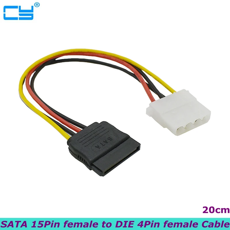Comprar Extensor de potencia de disco duro SATA, Cable de extensión de 20CM, 15 Pines, hembra a Molex, 4 pines, macho, para HDD, SSD