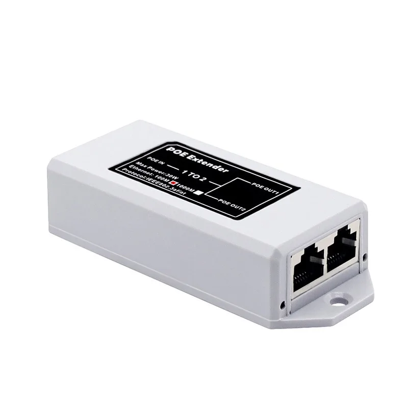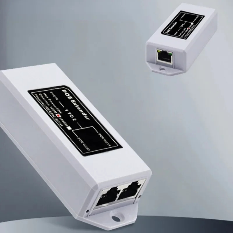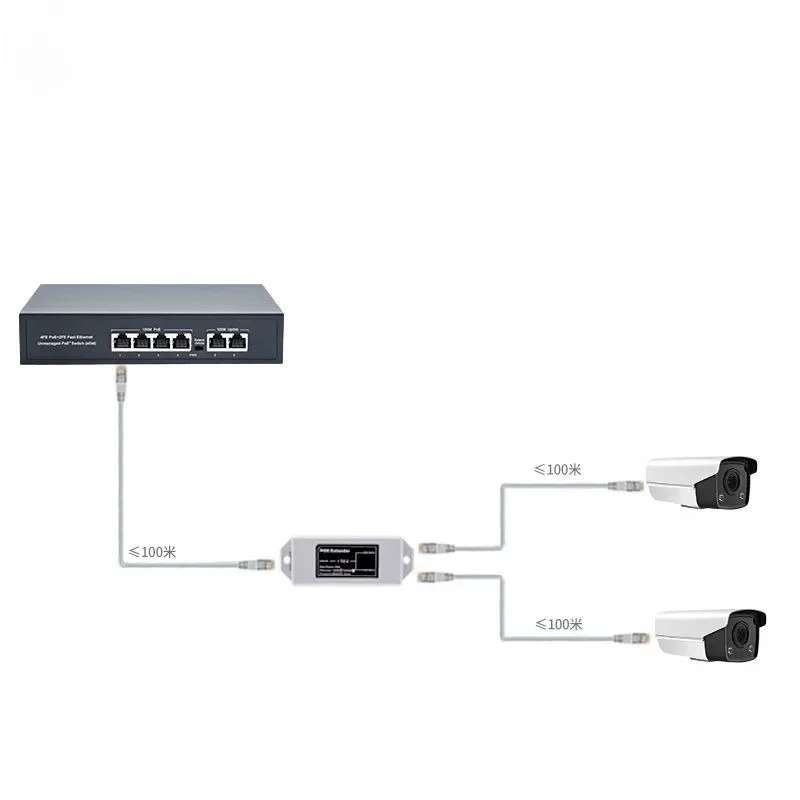 1 En 2 salidas Gigabit estándar POE 1000M extensor de red Cascad repetidor Rj45 cumple con IEEE 802.3AT/AF para interruptor de cámara IPNombre del producto: Extensor/Repetidor POE
