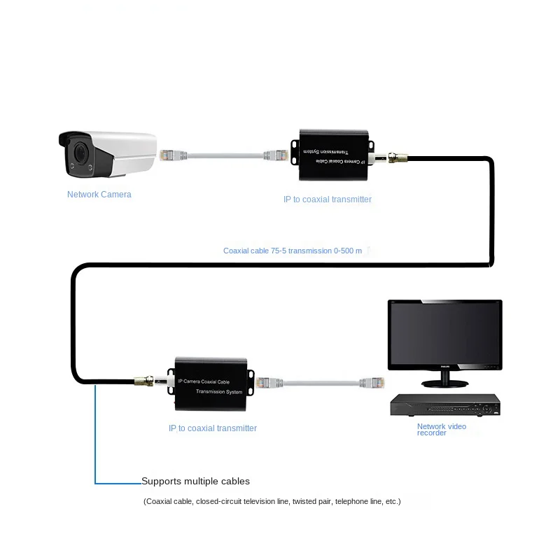 Comprar Extensor de red IP Coaxial, línea de vídeo analógica a HD, Cable de red Digital, amplificación de señal, convertidor de transmisión