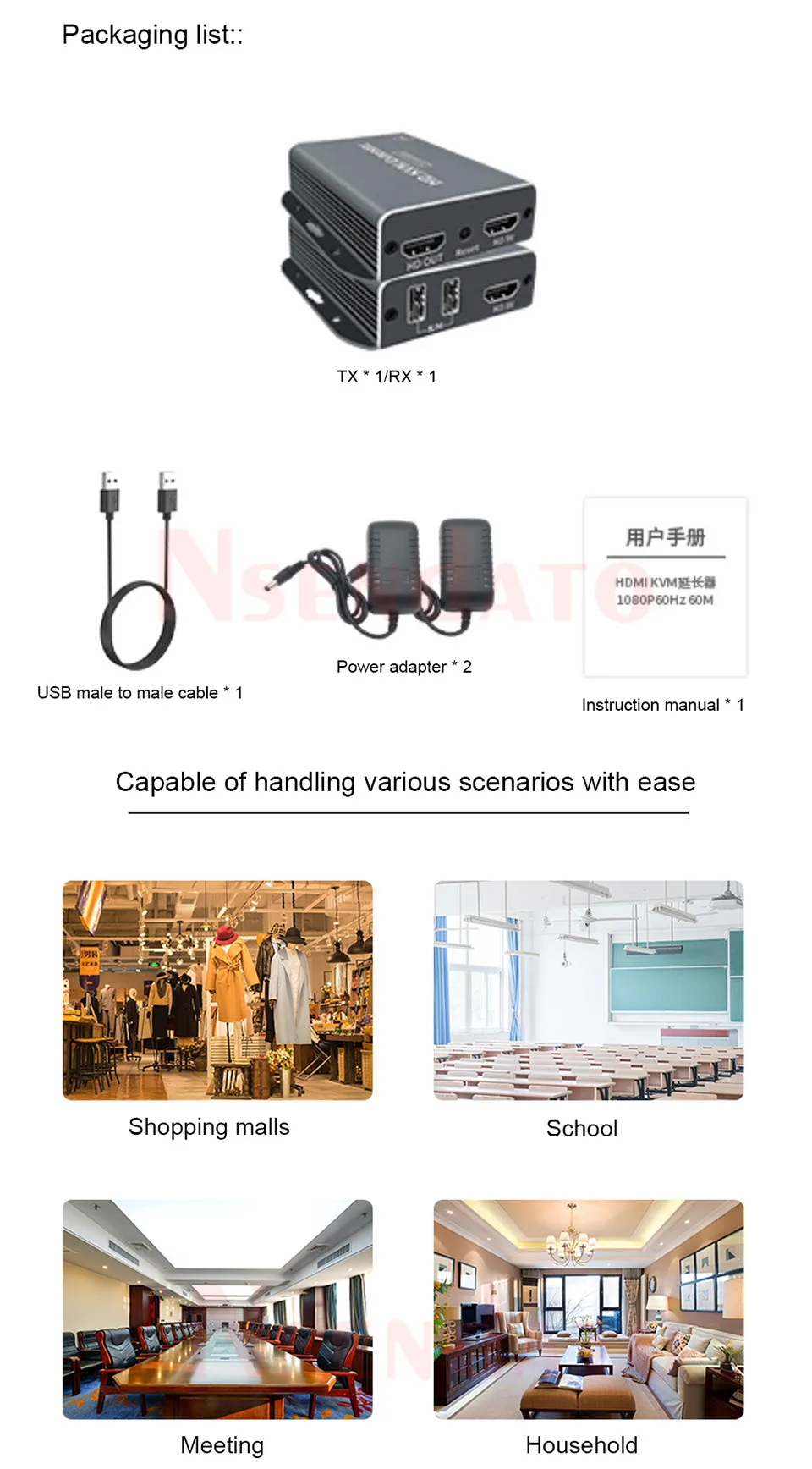 Extensor de red KVM USB HDMI de 60M a través de Ethernet 1080P extensor HDMI con salida de bucle para teclado de ratón cámara de DVD PC a Monitor de TV