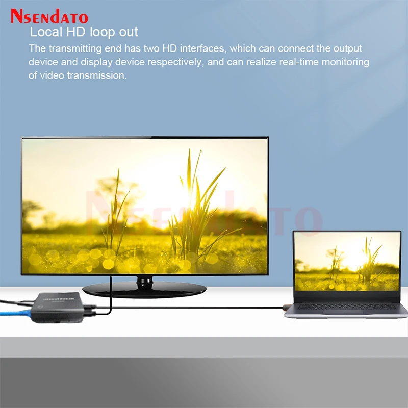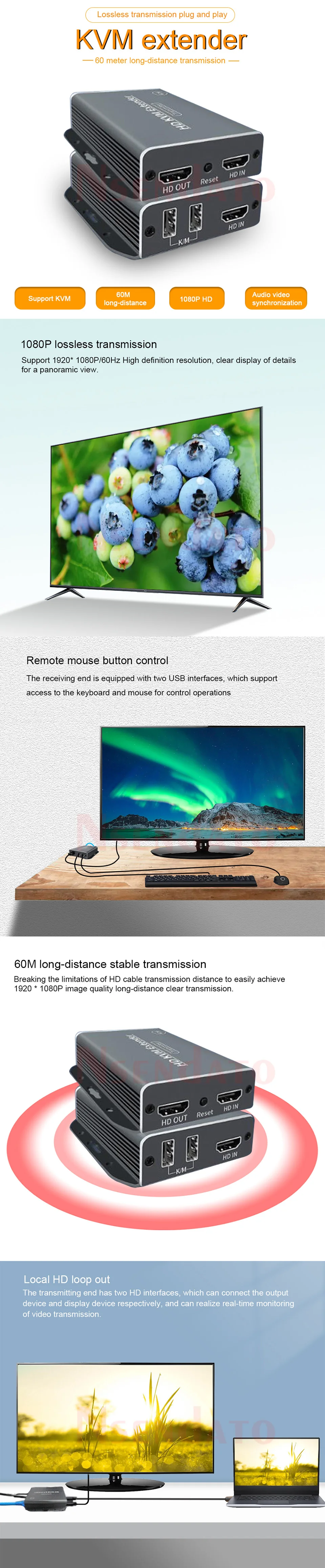 Comprar Extensor de red KVM HDMI USB de 60M sobre Ethernet 1080P extensor HDMI con salida de bucle para ratón teclado DVD cámara PC a Monitor de TV