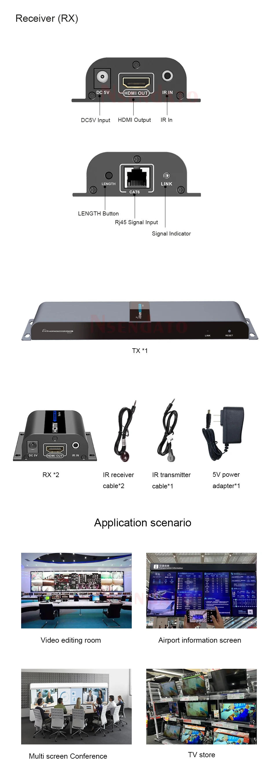 IntroducciónEste divisor extensor HDMI incluye un transmisor y dos receptores, extiende 1 fuente compatible con HDMI a 2 pantallas HDMI sobre un solo cable CAT6/6a/7 de hasta 40m/131ft. La resolución más alta admitida es 1920x1080 @ 60Hz, y admite paso IR, paso EDID y solo se necesita un adaptador de corriente para el transmisor,. El receptor está alimentado por el transmisor a través del cable CAT6. Solución Ideal para exposición compatible con HDMI, videoconferencia y centro de espectáculos, etc.Características:1. Distribuye 1 fuente HDMI a 2 pantallas HD a través del cable de red simultáneamente.2. Admite un bucle de salida HDMI.3.Compatible con cables de red CAT6/6a/7.4. La distancia de transmisión es de 40m/pies.5. La resolución más alta es de hasta 1920x1080 a 60Hz.6. Soporta 20 ~ 60Hz IR pass back.7. Compatible con EDID.8. Admite energía desde el transmisor hasta la unidad receptora a través del cable CAT6.9.Plug and play.10. Función de montaje en pared, fácil instalación.El paquete incluye:1 unidad de transmisor xHDMIMIUnidad receptora 2xhdmi2xIR cable receptor1xIR cable Blaster1xAC 110 ~ 240V proveedor de energía1x manual de usuario