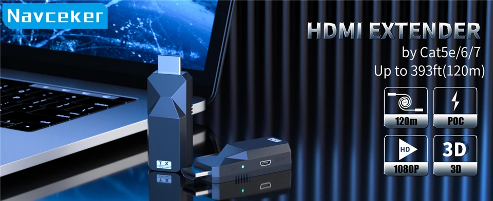 El extensor HDMI Navceker proporciona una extensión de señales HDMI a largas distancias a través de un solo cable CAT5e/6, admite una alta resolución de hasta 1920x1080 a 60Hz y transmisión de señal 3D. El extensor se puede utilizar para una amplia gama de aplicaciones que requieren transmisión a larga distancia de alta resolución con alta calidad por su buena estabilidad y potente seguridad.
