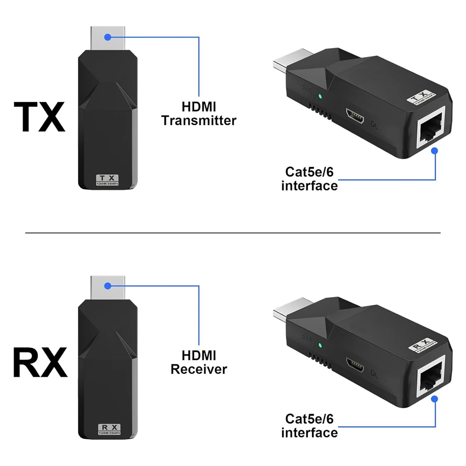 Comprar Extensor de red sobre IP, transmisor HDMI 2024 P de 120M por RJ45 CAT5e CAT6, Extensor LAN como divisor HDMI, compatible con POC, 1080