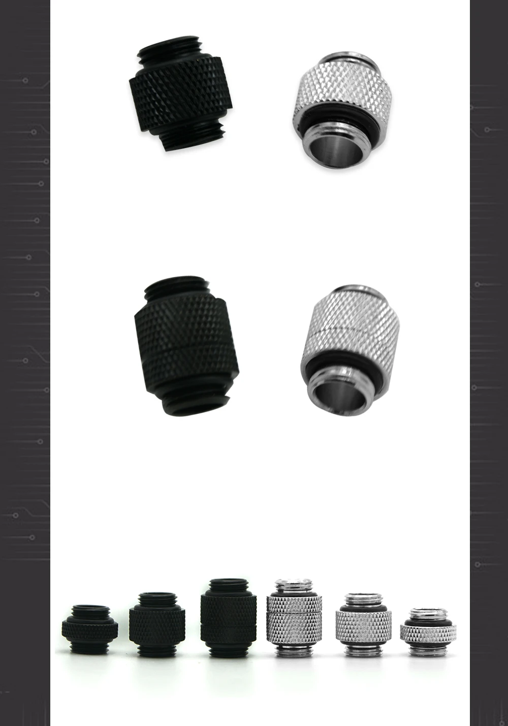 MINI Apriete a mano la longitud de la porción en relieve 5MM (sin hilo) Anillo grueso de doble cara Material: LatónTamaño de rosca externa: G1/4 (dientes regulatorios aceptados internacionalmente)Cantidad: 2 piezasColores disponibles: Negro/plataEmpaquetado incluido