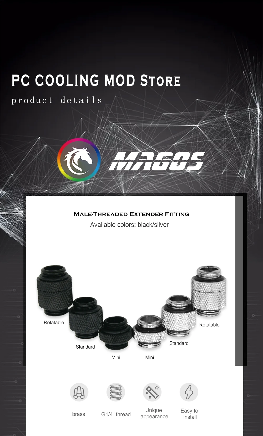 Comprar Extensor de rosca macho, accesorio de tope Mini/giratorio 360 m-m G1/4 '', Negro/plateado