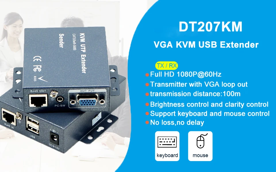 Comprar Extensor de señal KVM sobre Cat5, Cable RJ45, 330 pies, VGA, Audio estéreo, USB, Cat5, Cat5e, Cat6, transmisor VGA sin retraso de pérdida